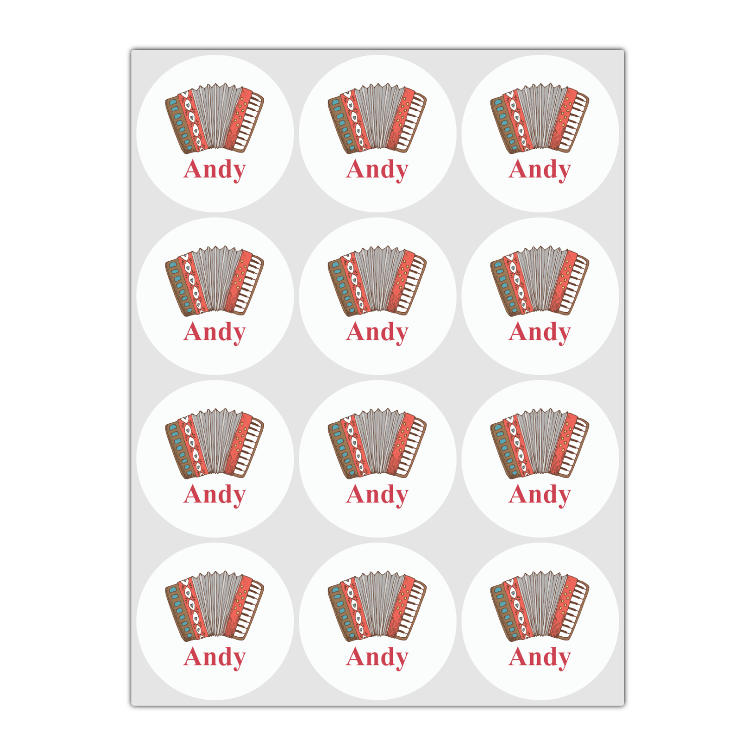 We have selected a classic red ribbon along with a square label that features the accordion along with a name for the personalization. You have a choice of instruments to feature on the label - your choices are: vintage guitar, xylophone, accordion, trumpet, keyboard, drum, microphone or bell and of course you can personalize it with your choice of text.