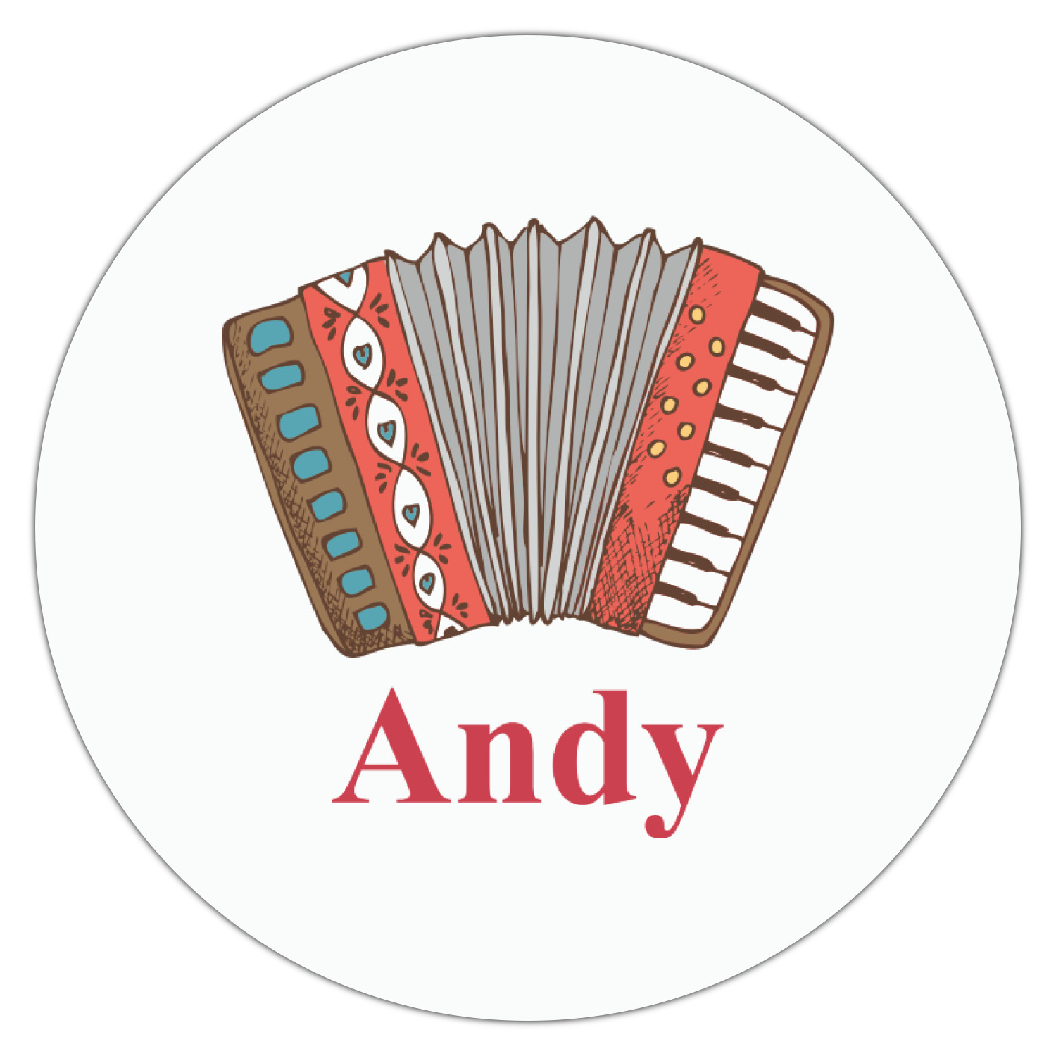 We have selected a classic red ribbon along with a square label that features the accordion along with a name for the personalization. You have a choice of instruments to feature on the label - your choices are: vintage guitar, xylophone, accordion, trumpet, keyboard, drum, microphone or bell and of course you can personalize it with your choice of text.