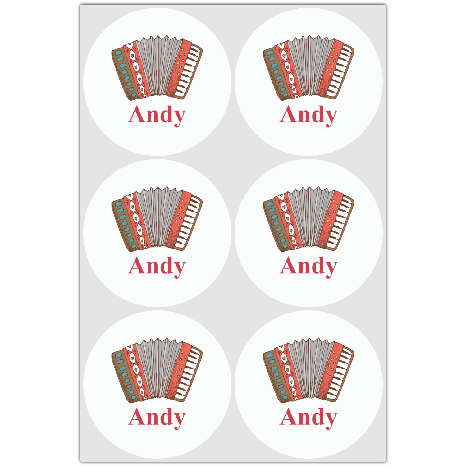 We have selected a classic red ribbon along with a square label that features the accordion along with a name for the personalization. You have a choice of instruments to feature on the label - your choices are: vintage guitar, xylophone, accordion, trumpet, keyboard, drum, microphone or bell and of course you can personalize it with your choice of text.