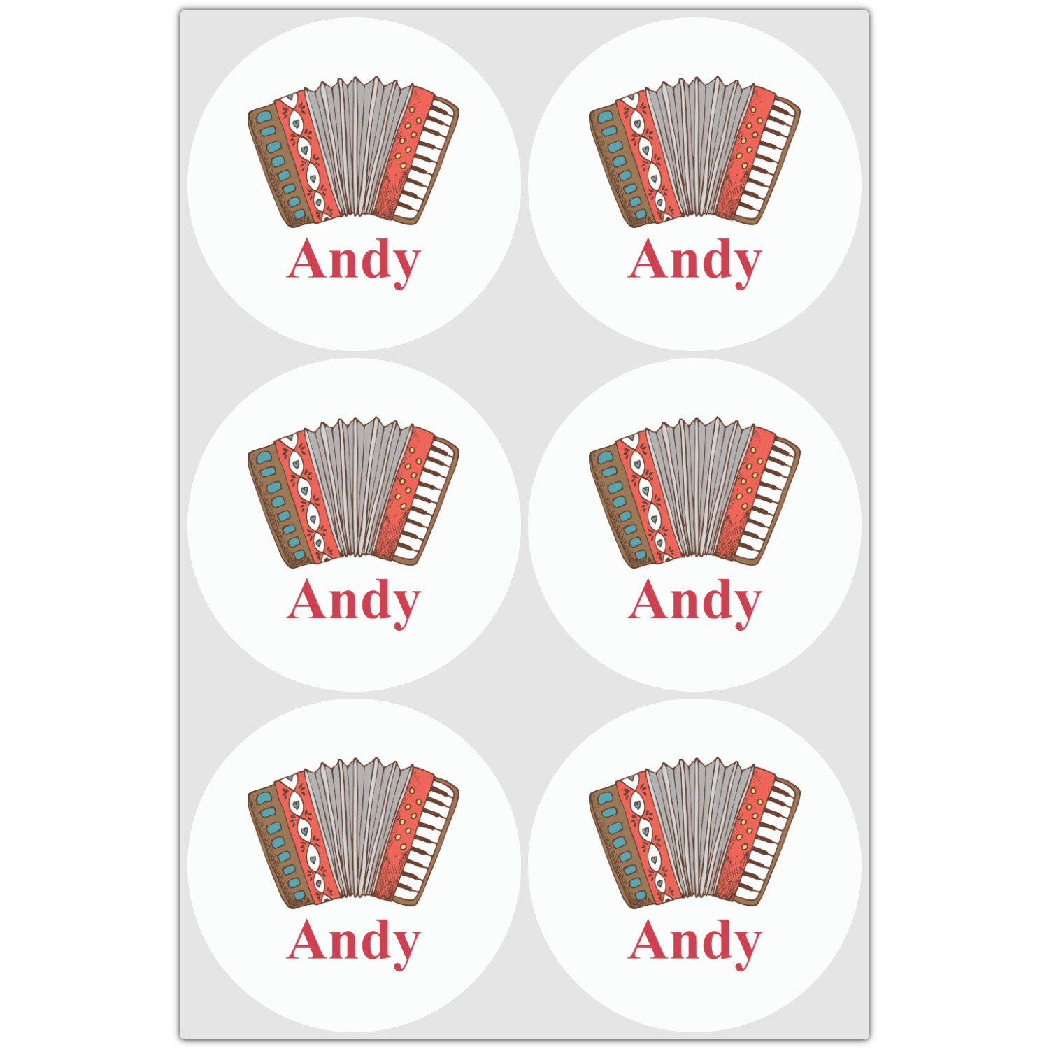 We have selected a classic red ribbon along with a square label that features the accordion along with a name for the personalization. You have a choice of instruments to feature on the label - your choices are: vintage guitar, xylophone, accordion, trumpet, keyboard, drum, microphone or bell and of course you can personalize it with your choice of text.