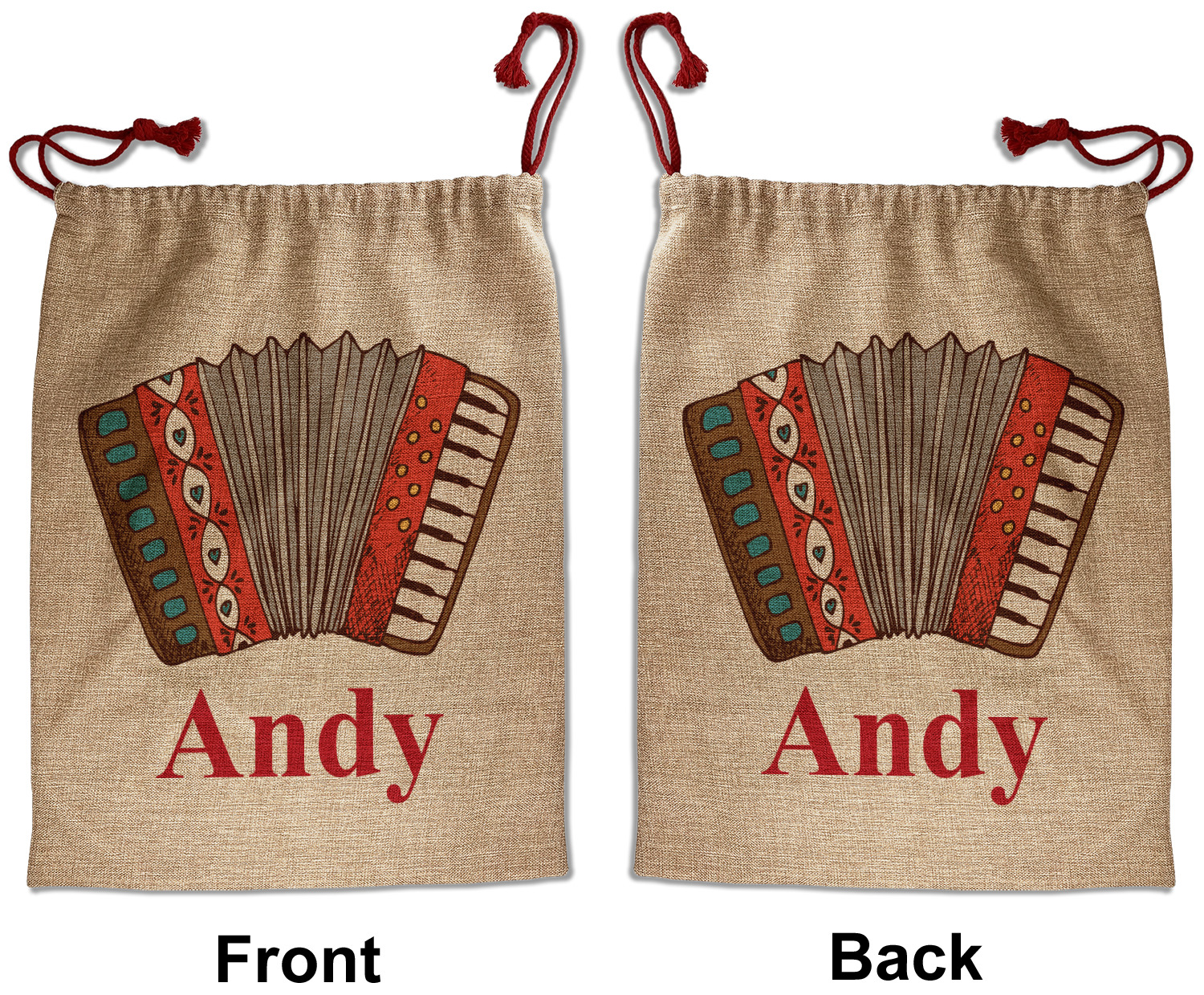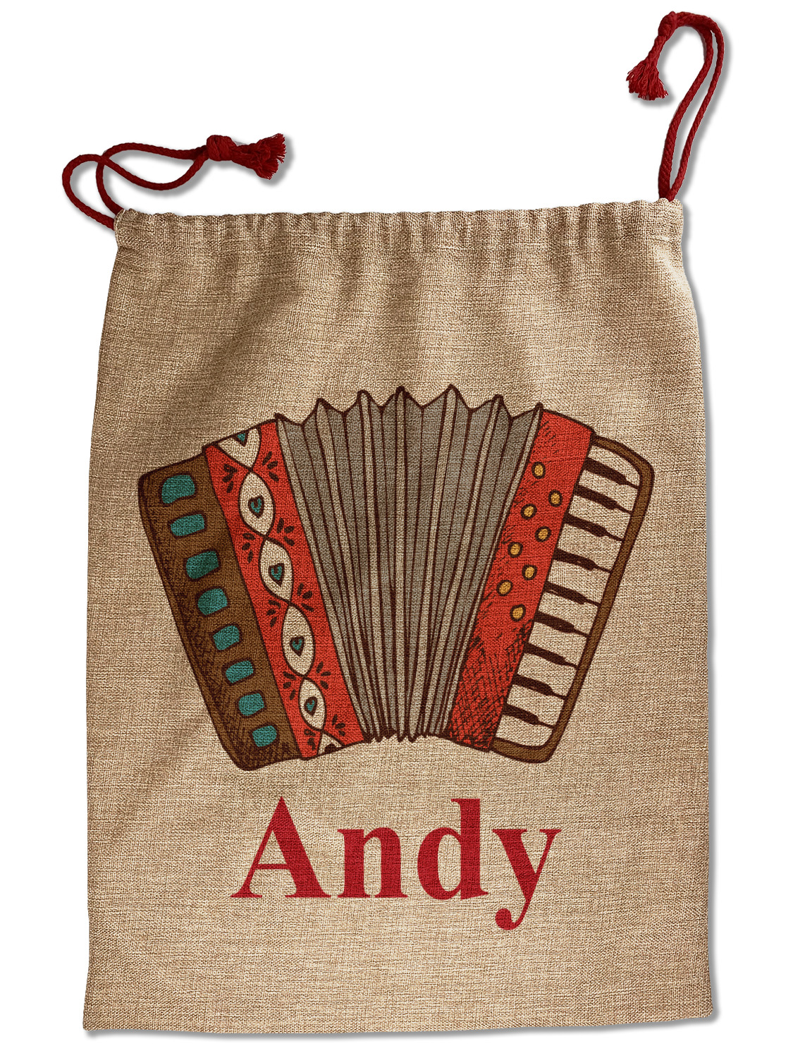 We have selected a classic red ribbon along with a square label that features the accordion along with a name for the personalization. You have a choice of instruments to feature on the label - your choices are: vintage guitar, xylophone, accordion, trumpet, keyboard, drum, microphone or bell and of course you can personalize it with your choice of text.