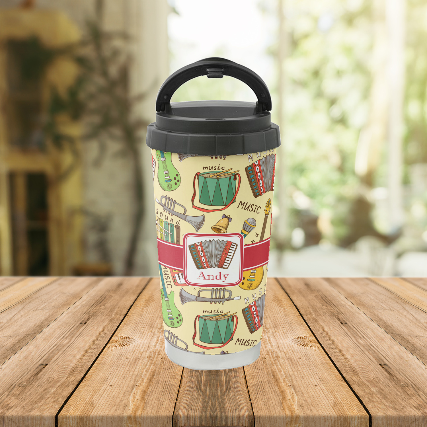 We have selected a classic red ribbon along with a square label that features the accordion along with a name for the personalization. You have a choice of instruments to feature on the label - your choices are: vintage guitar, xylophone, accordion, trumpet, keyboard, drum, microphone or bell and of course you can personalize it with your choice of text.