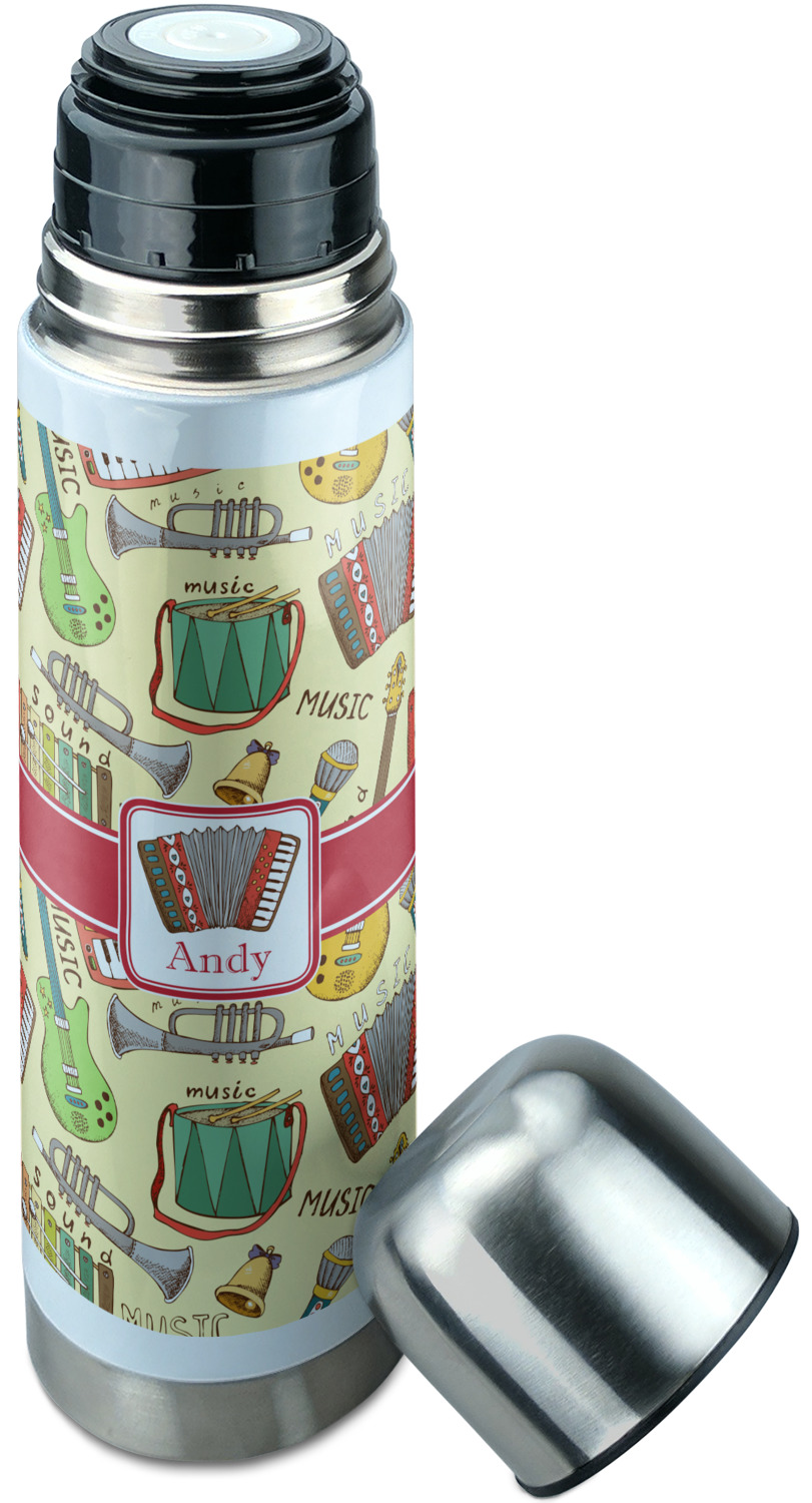Manufactured from stainless steel, this thermos is built durably and double-walled insulated to preserve the temperature of your drink for hours. It also features a screw off lid that is made to also function as a small cup. Upon unscrewing this part of the thermos bottle, a pop-open, pour feature emerges. This feature allows you to slowly pour your beverage into your lid, ensuring a steady, controlled pour into your lid or other cup. With a capacity of 25 ounces, these large thermoses can hold several servings of your favorite beverage. Your customization is displayed all around the bottle with bright, vibrant color.