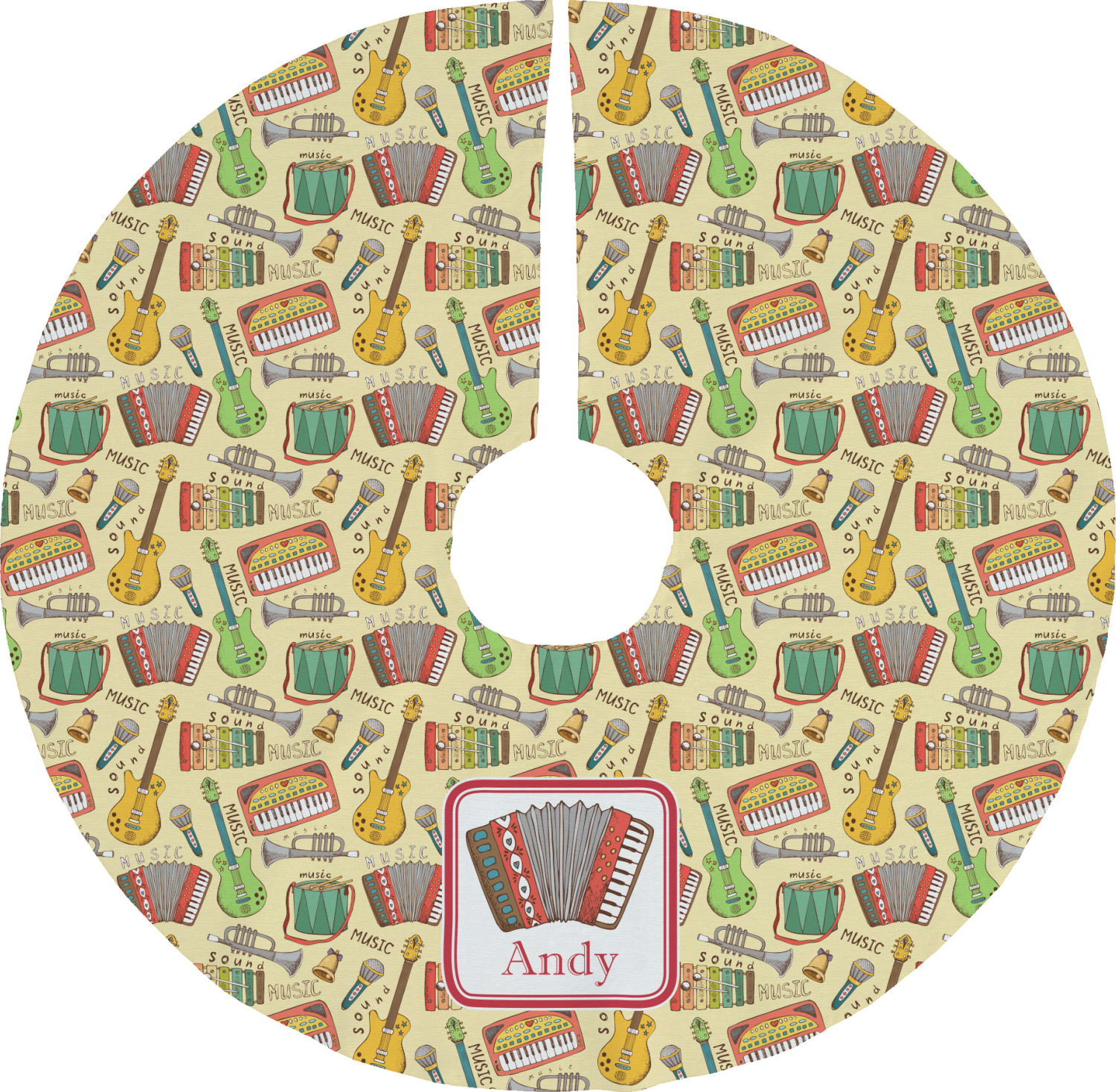 We have selected a classic red ribbon along with a square label that features the accordion along with a name for the personalization. You have a choice of instruments to feature on the label - your choices are: vintage guitar, xylophone, accordion, trumpet, keyboard, drum, microphone or bell and of course you can personalize it with your choice of text.