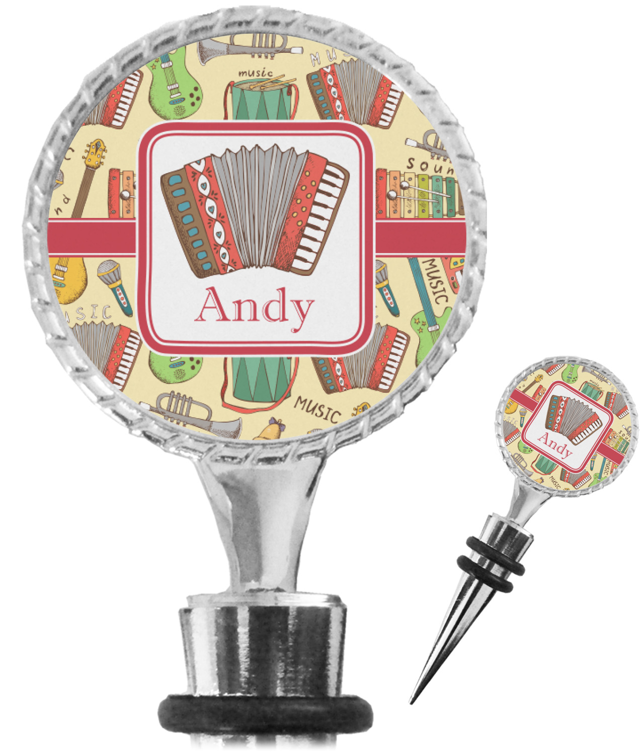 The top part of your bottle stopper is comprised of a zinc ring that displays your customization(s) in its middle, on both sides. The ring is heavy duty, with a bright chrome finish. The body of the wine stoppers have two silicone rings to provide an airtight seal. These wine bottle stoppers measure at 1.625" L x 0.8125" W x 4.625" H; your custom wine stopper is meant to fit into most standard-sized wine bottles.