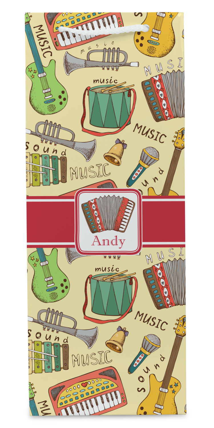 We have selected a classic red ribbon along with a square label that features the accordion along with a name for the personalization. You have a choice of instruments to feature on the label - your choices are: vintage guitar, xylophone, accordion, trumpet, keyboard, drum, microphone or bell and of course you can personalize it with your choice of text.