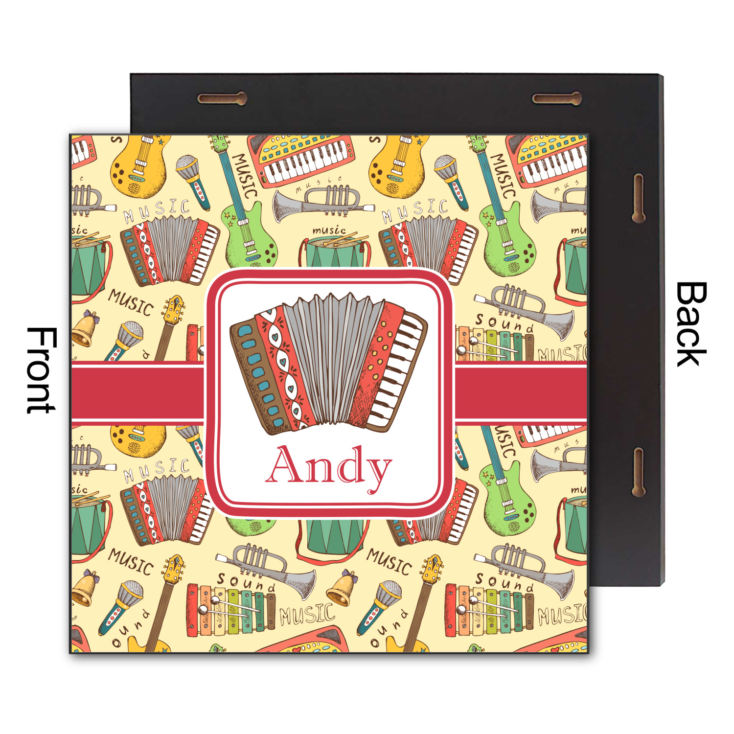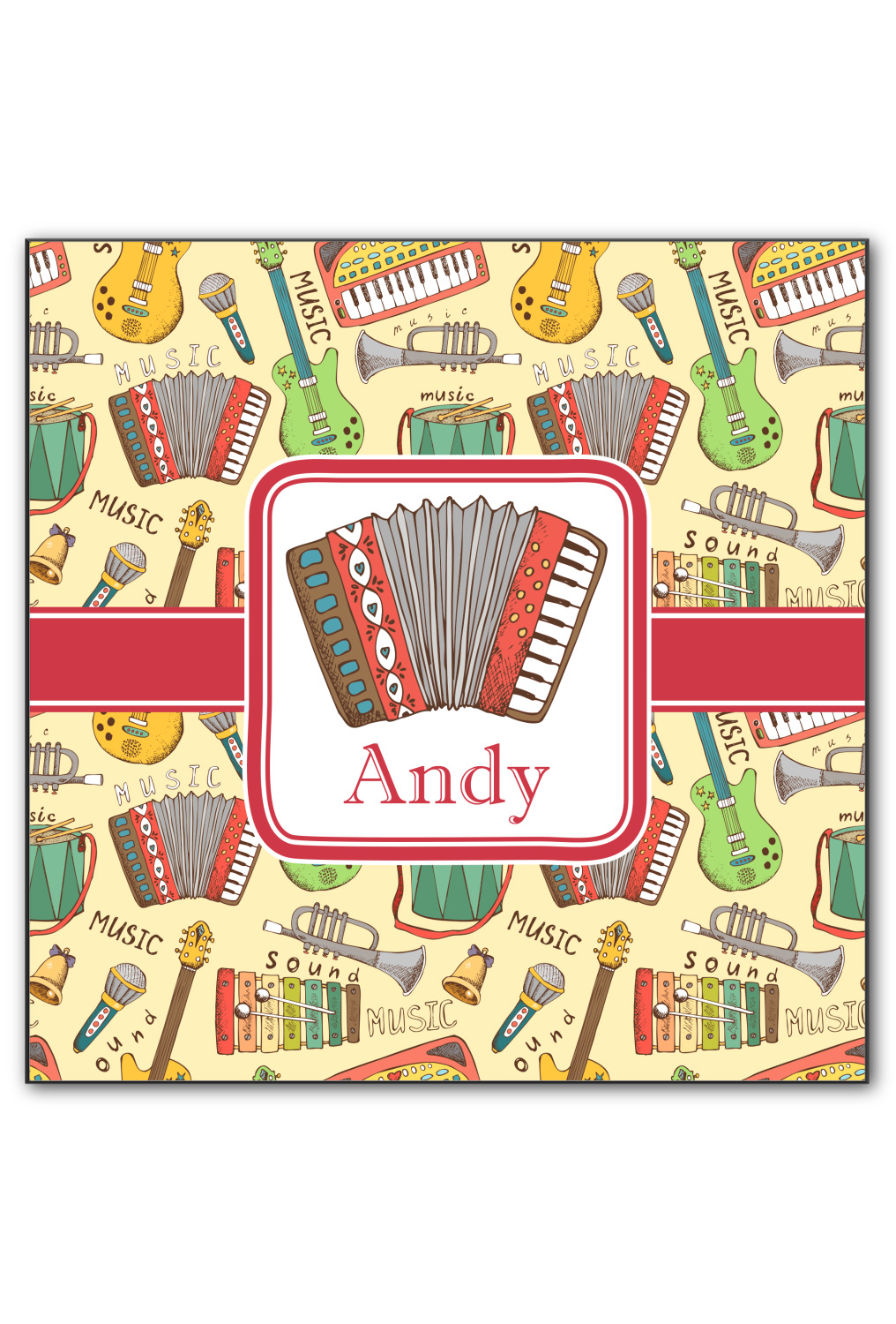 We have selected a classic red ribbon along with a square label that features the accordion along with a name for the personalization. You have a choice of instruments to feature on the label - your choices are: vintage guitar, xylophone, accordion, trumpet, keyboard, drum, microphone or bell and of course you can personalize it with your choice of text.