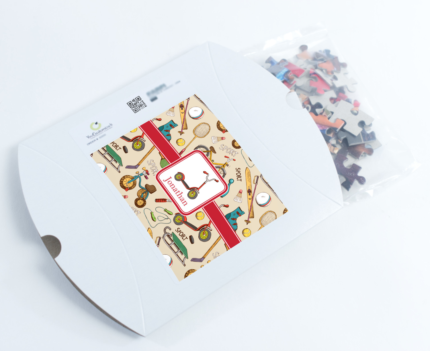 You can also upload your logo or art that you or your kids drew. To create more challenging jigsaw puzzles, you can create a pattern from with your logo or artwork. You can also add other elements such as text or personalization.