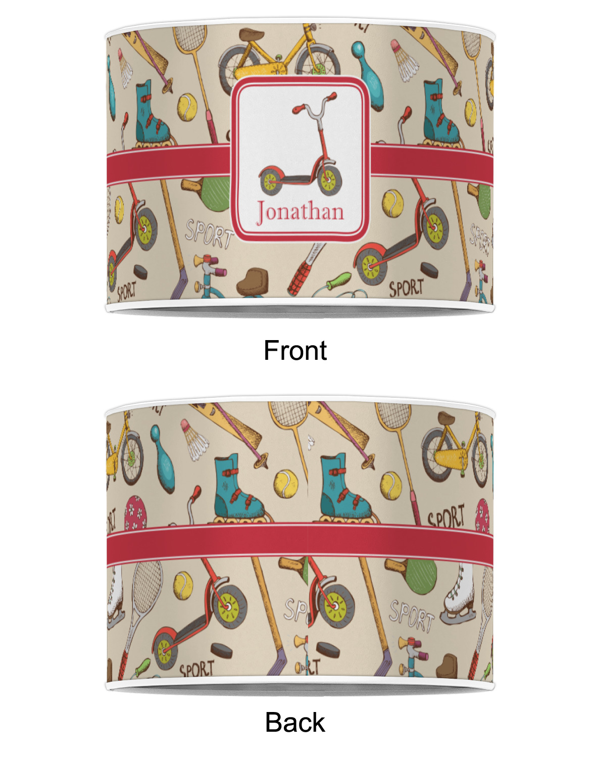 Our customized lamp shades also come in 3 different sizes: 8", 12" and 16", measuring at 8" in diameter by 6" tall, 12" in diameter by 8" tall, and 16" in diameter by 10" tall, respectively.