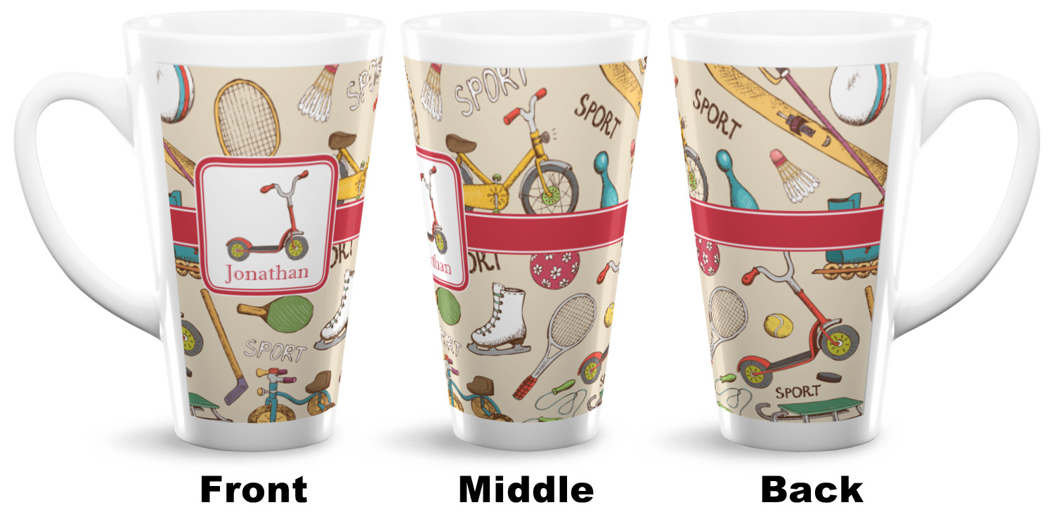 Sip and stay cozy with our custom latte mugs! Mugs are a simple gift for anyone, but make yours unique by personalizing our ceramic mugs for you and your close ones! Our tall latte mugs are great for an iced latte to start your day or the perfect size for some extra warm tea before bed! Use our smaller latte mugs to practice latte art! Browse our many designs, create your own, upload a photo or logo, and more with our online design studio!