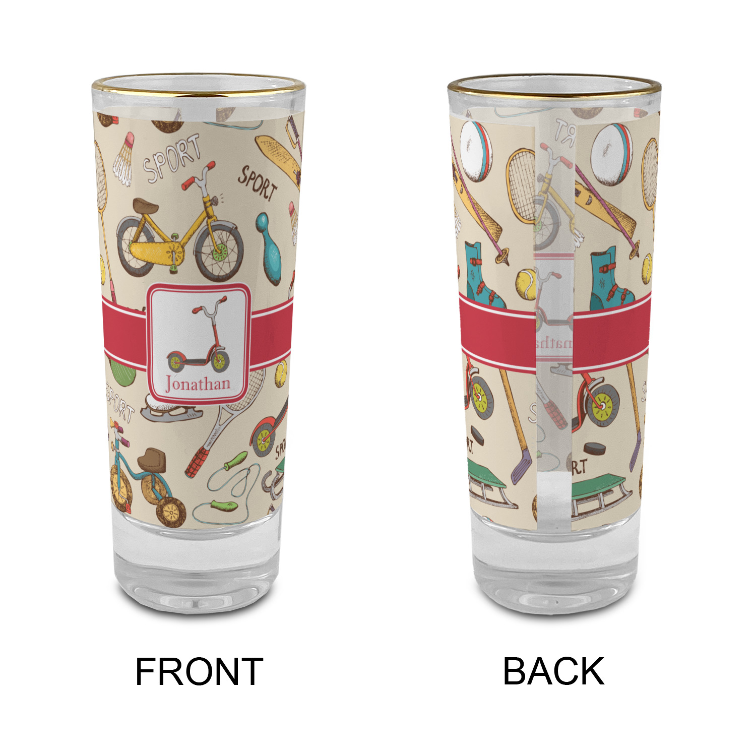 These glass shooter glasses are printed in full color with the design of your choice. These are a tall shooter 2 oz size and stand 4" tall. The print is a full wrap design to boldly display your personalization.