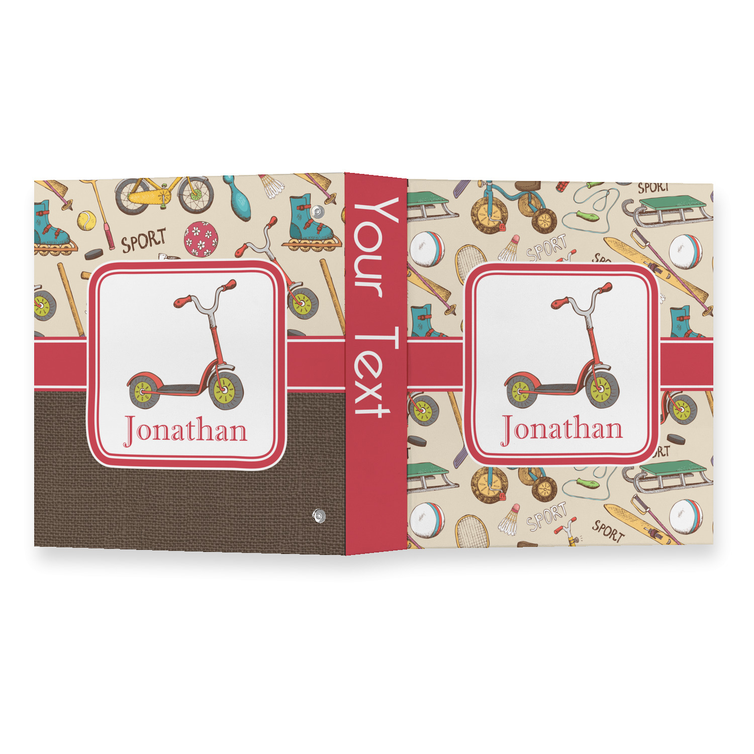 The outside is printed in 3 sections - front cover, spine and back cover - while the inside is printed in a full single print of your choice. The inside boasts a high quality nickel plated binder mechanism with a trigger opening function and is secured to the cardboard binder with posts and screws.