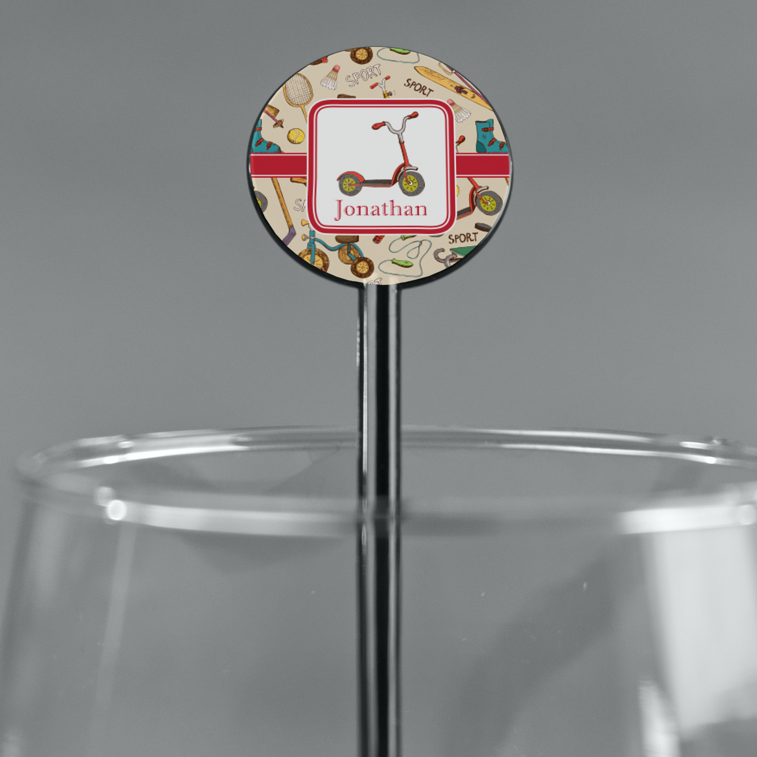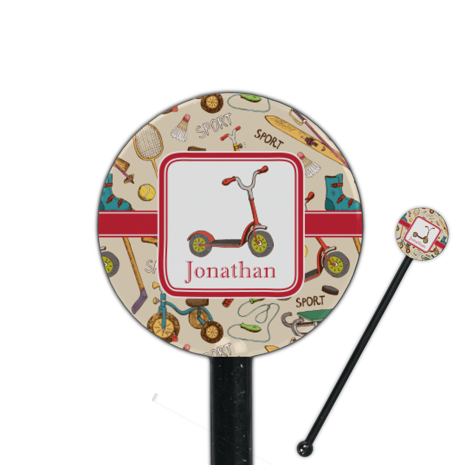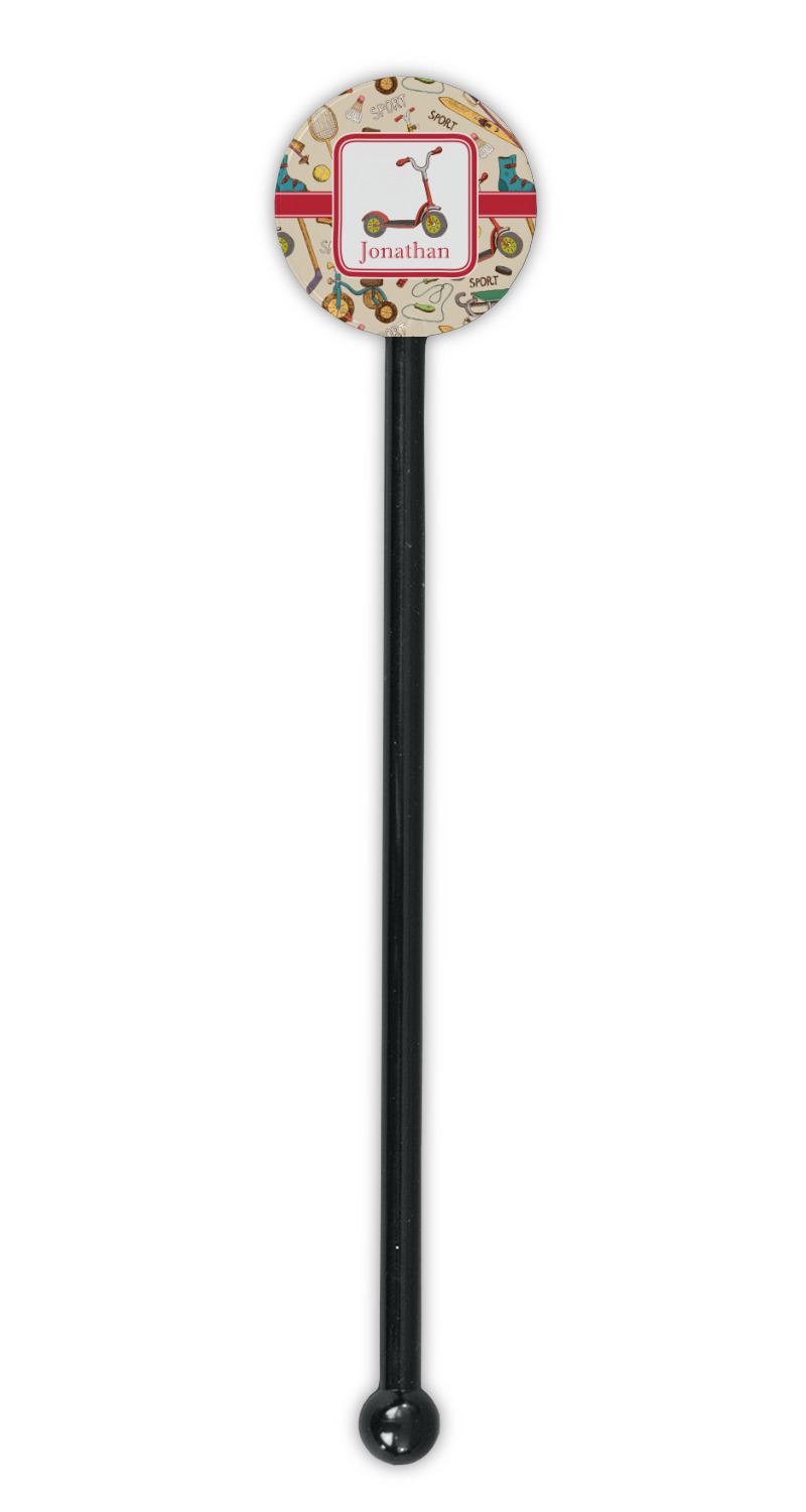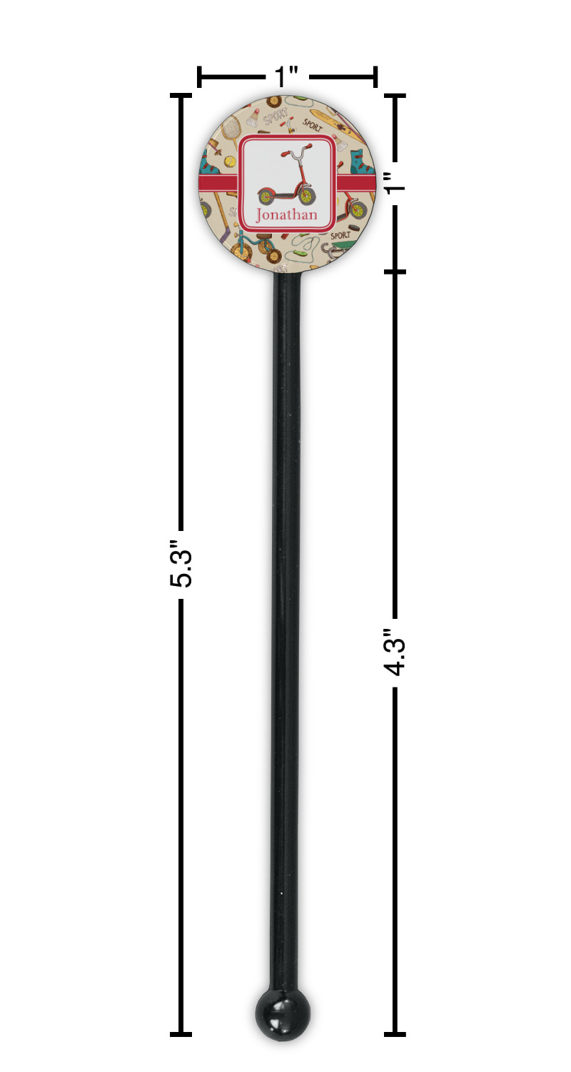 Vintage Designs for 5.5" Round Plastic Stir Sticks - Black - Single-Sided
