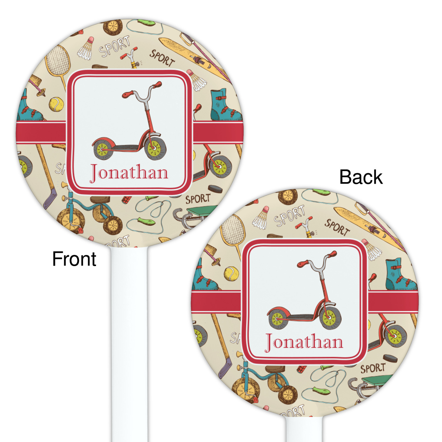 Vintage Designs for 5.5" Round Plastic Stir Sticks - White - Double-Sided