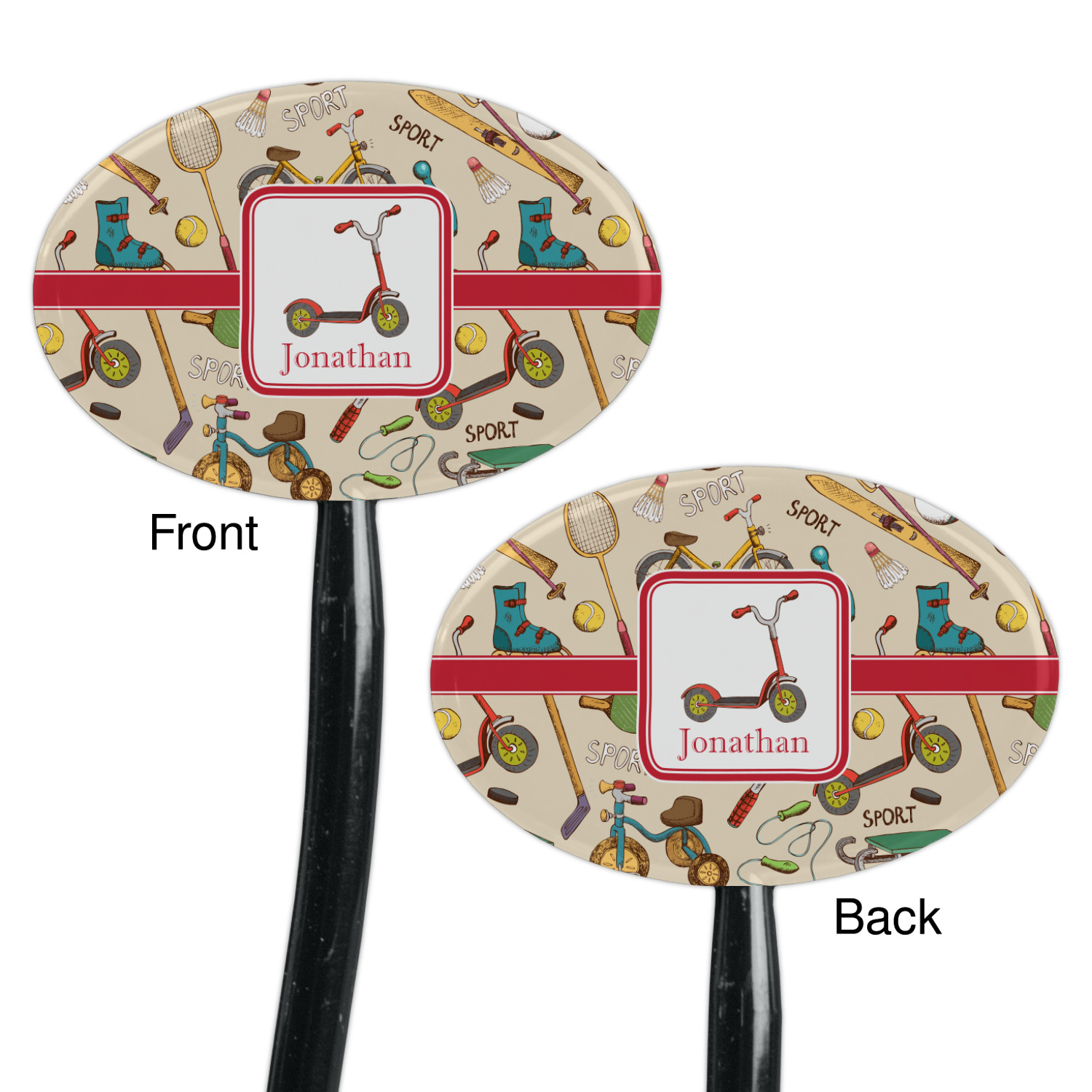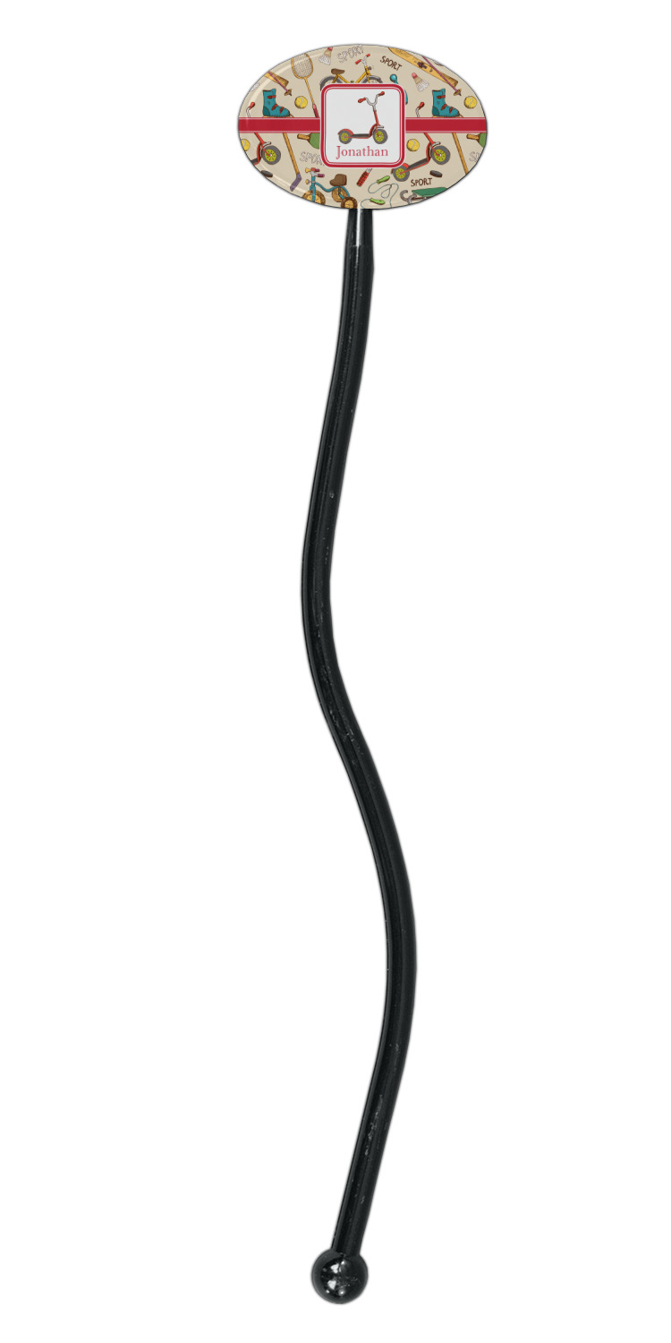 Vintage Designs for 7" Oval Plastic Stir Sticks - Black - Double-Sided