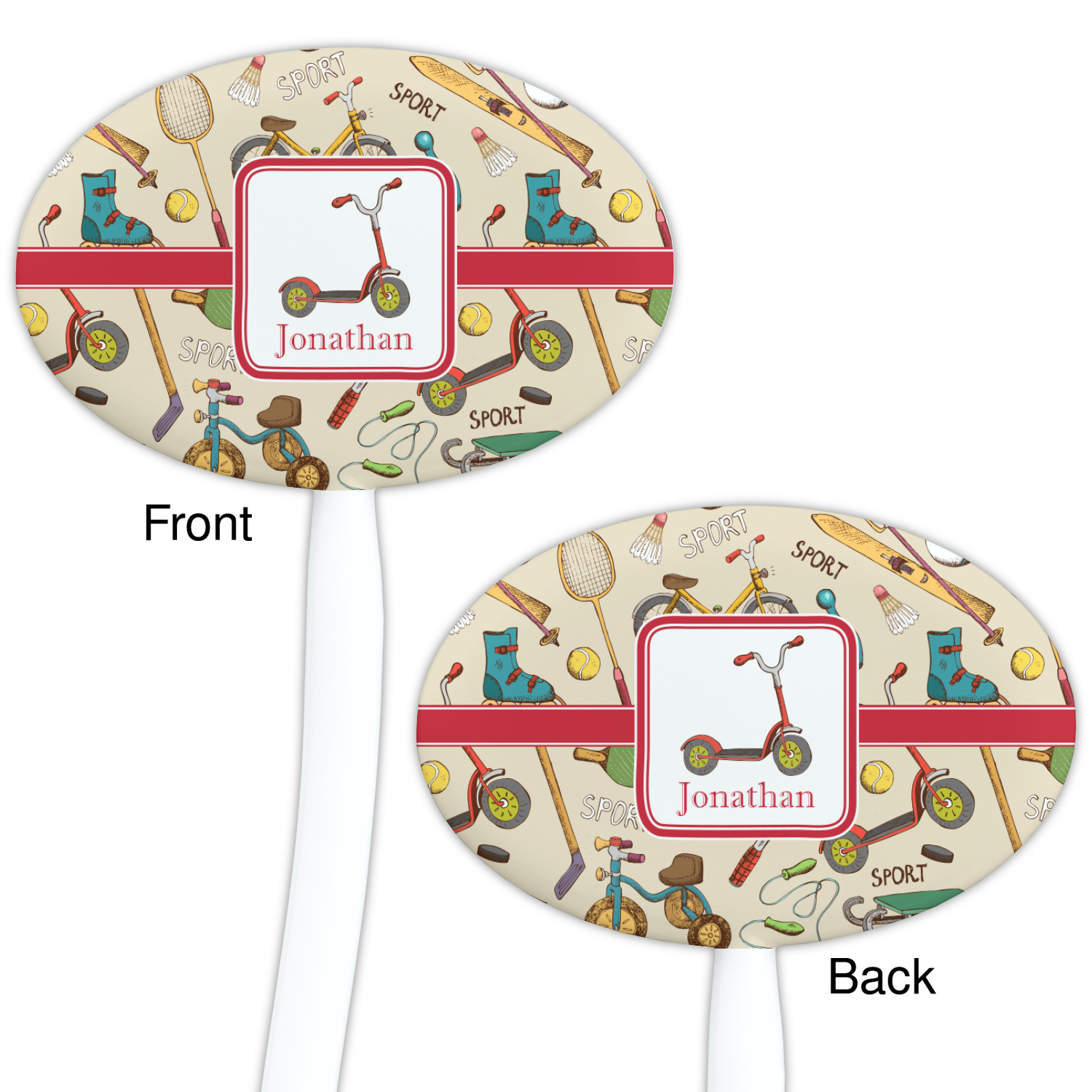 This design allows you to customize to your taste. Choose your background color, your ribbon style, label style, and pick a sport to place in the label to highlight. Don't forget to let us know the name you want highlighted in your special design.