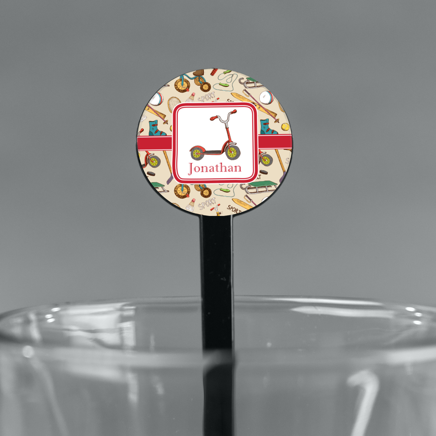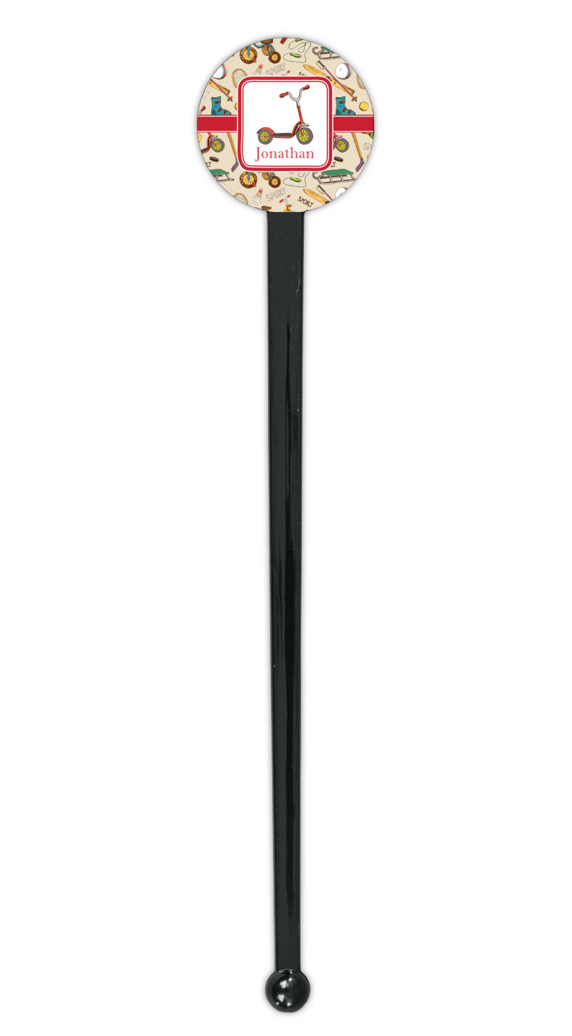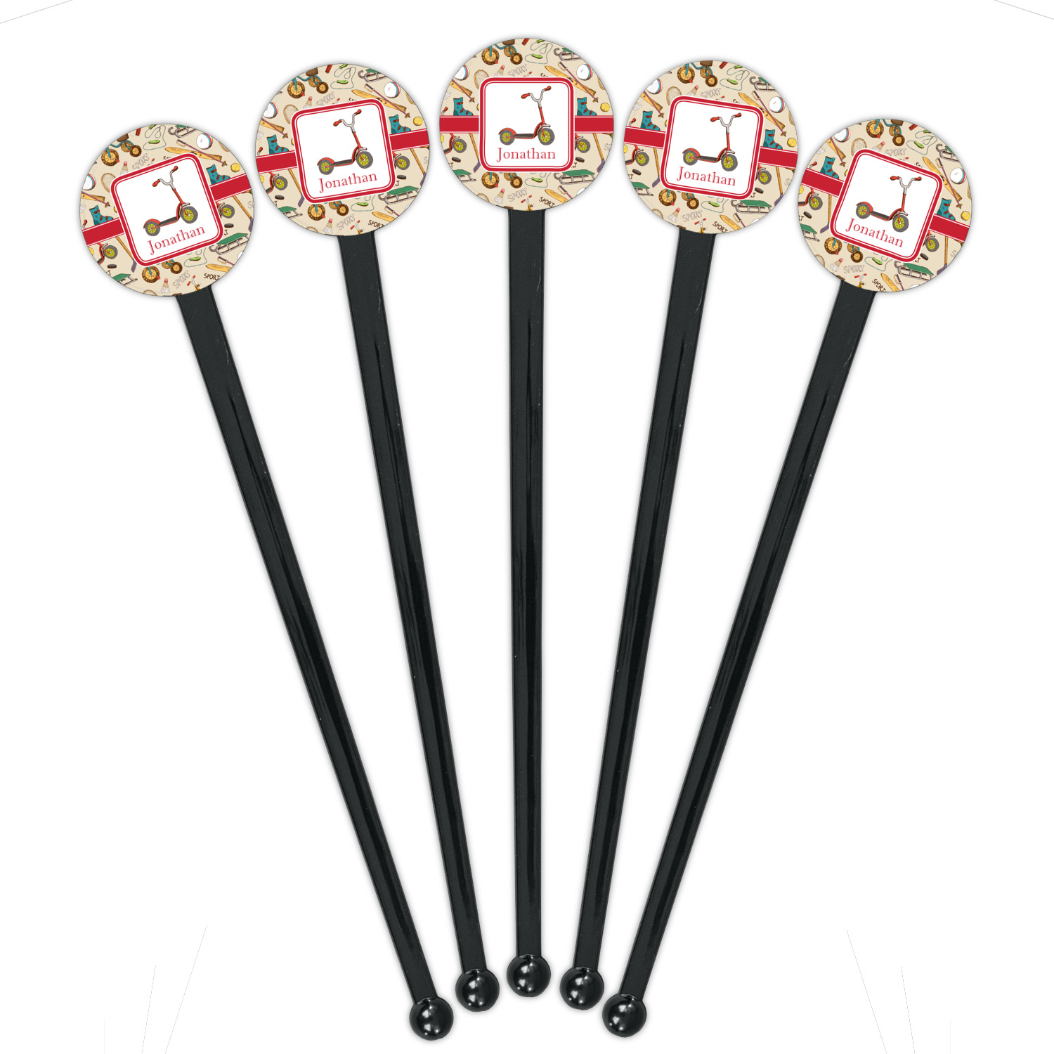 Vintage Designs for 7" Round Plastic Stir Sticks - Black - Double-Sided