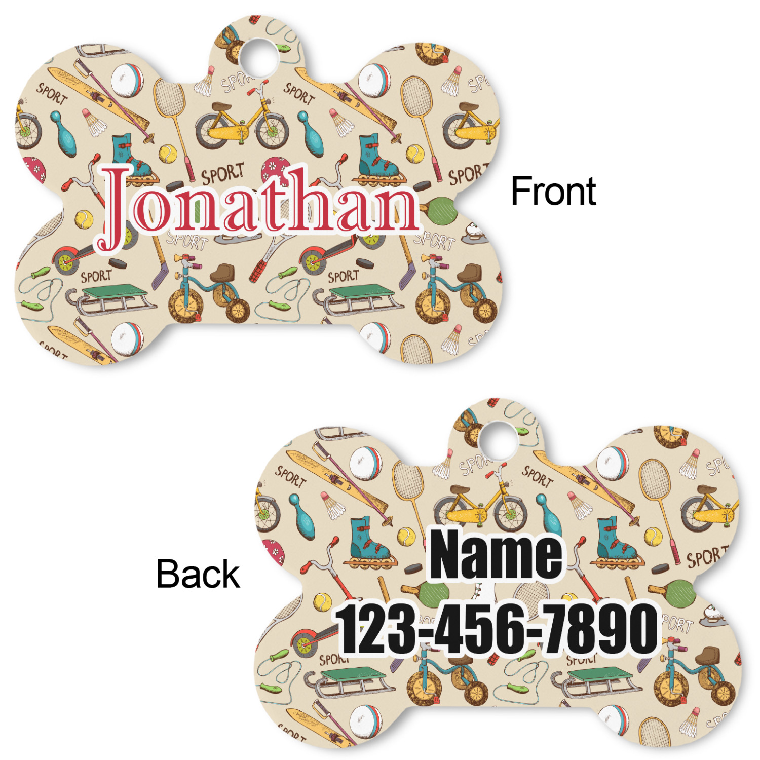 Shaped like a bone and made from aluminum, these tags are available in 2 different sizes.