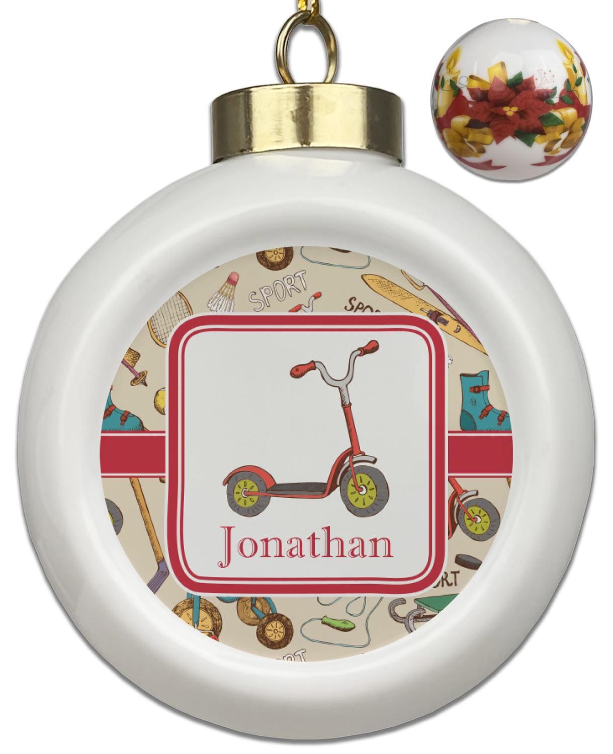 Our Christmas ornaments are a unique ceramic ball shape with a twist as it has a flat face to display your custom design! Select from one of our two design types - Christmas Tree or Poinsettia Garland - to adorn the curved back of your personal design. Each ornament measures 3H x 2.5W x 2D accompanied with a gold string accent for finishing touches to hang on your beautiful Christmas tree!