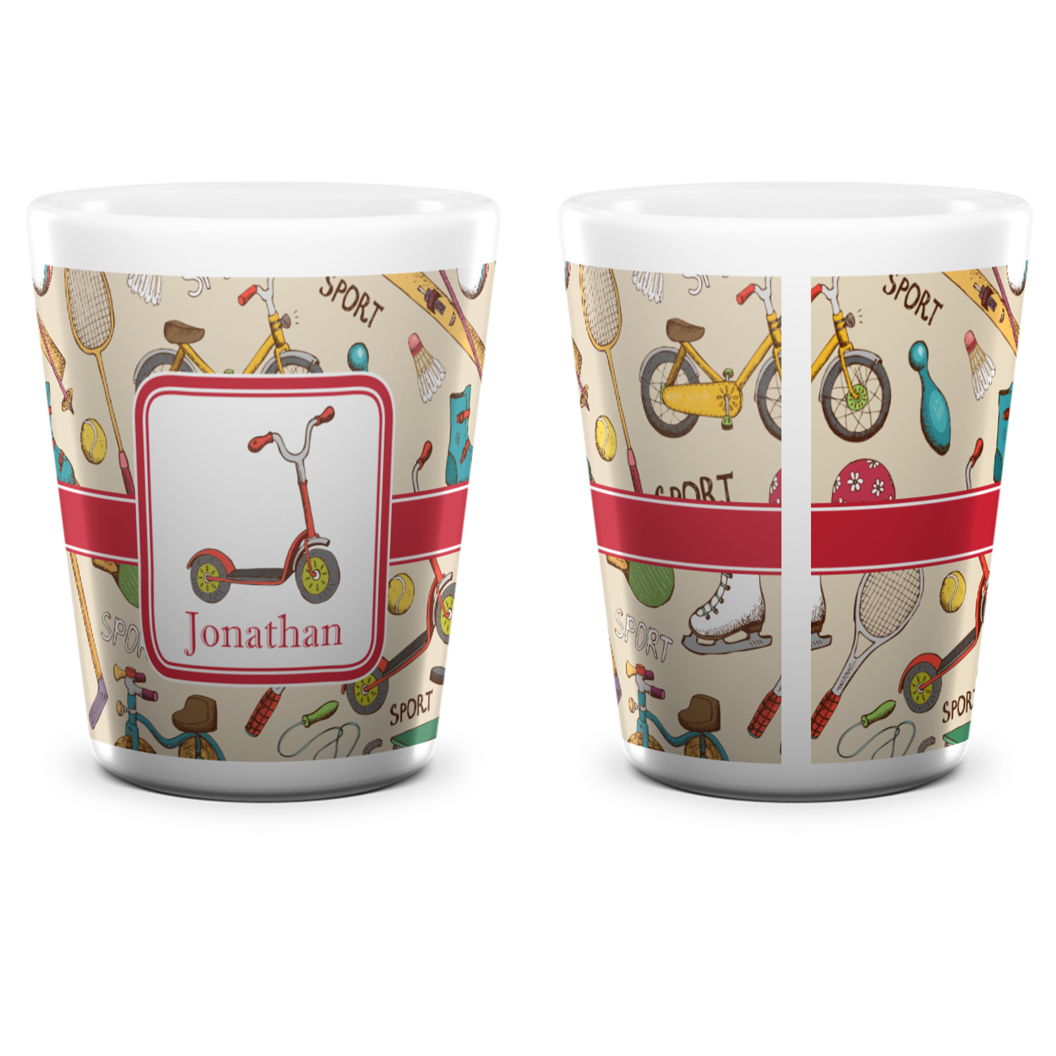 Made from ceramic these shot glasses are printed in full color with the design of your choice. These are a standard 1.5oz size and stand 2.25" tall. Available in a full white ceramic or a two-tone with a black color inside the shot glass. Buy a single or a set of 4, all of which can be designed separately to get you just what you want and need.