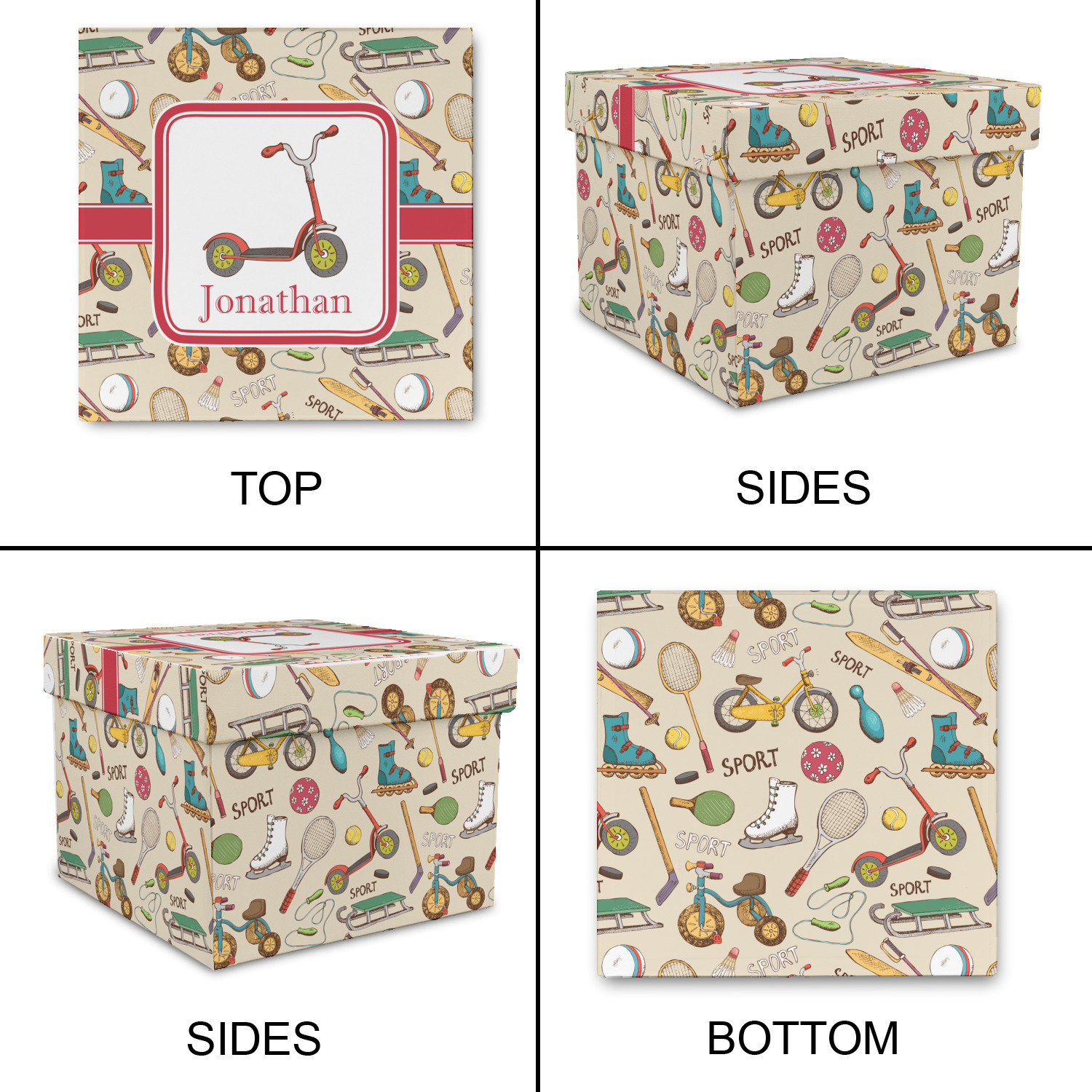 Up for a game of badminton? Rewind the clock with our adorable vintage sports pattern. Using vintage colors to highlight hockey sticks, vintage bicycles, roller skates, and even bowling this design will make you want to relive those wonderful childhood days.