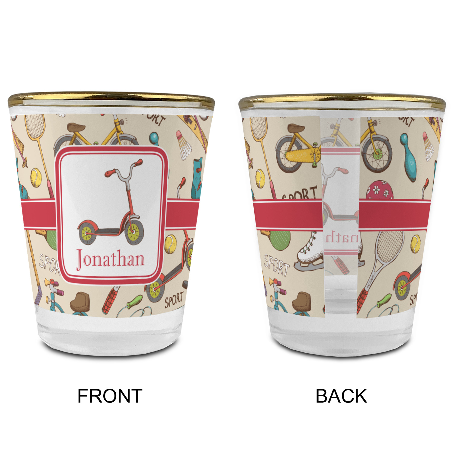 Vintage Designs for Glass Shot Glasses - 1.5 oz - with Gold Rim - Single