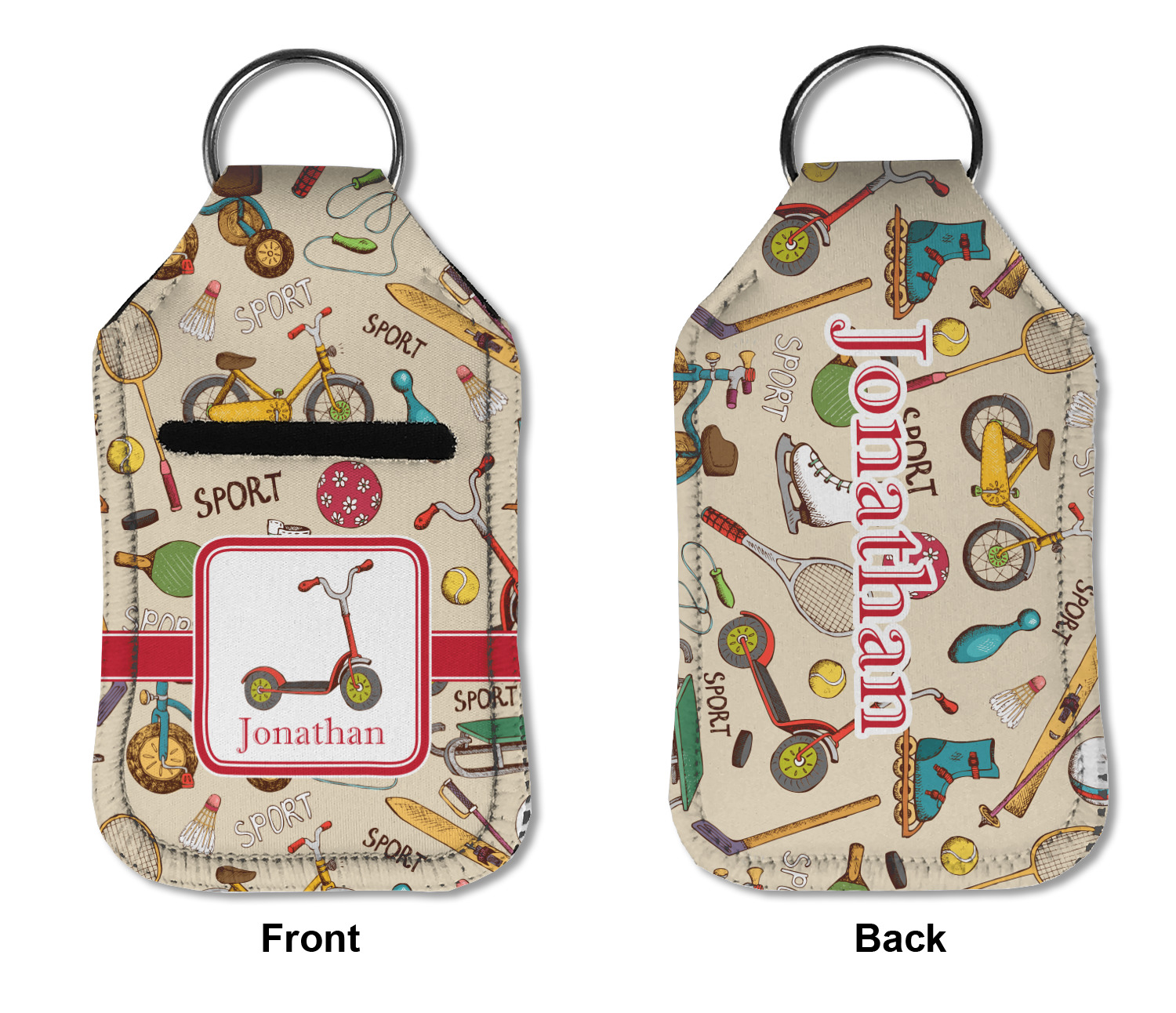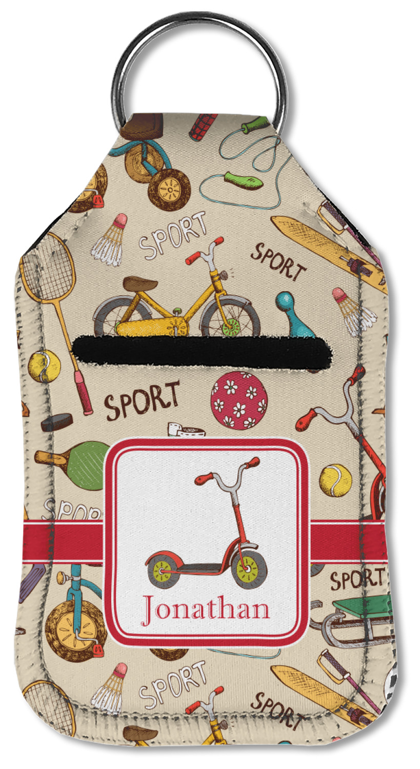 Each hand sanitizer holder comes with its own empty travel-sized, refillable hand sanitizer sure to fit snug in your customized sanitizer case! Our hand sanitizer cases are a durable, yet soft neoprene material sure to last any daily activities or travel agenda. Customize and personalize a hand sanitizer bottle holder with one of our two sizes - small (4.25" x 2.25") or large (5.5" x 2.5"). Each travel sanitizer holder comes with a keyring for attachment on bags, keys, or more!