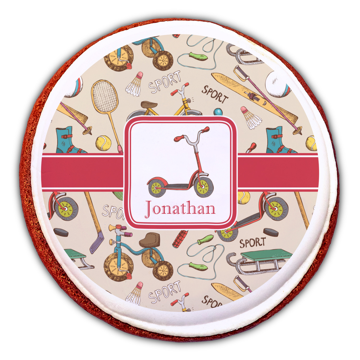 Your customized cookie toppers can be placed on top of any dessert with an icing top.The icing helps adhere the cookie topper to the dessert.