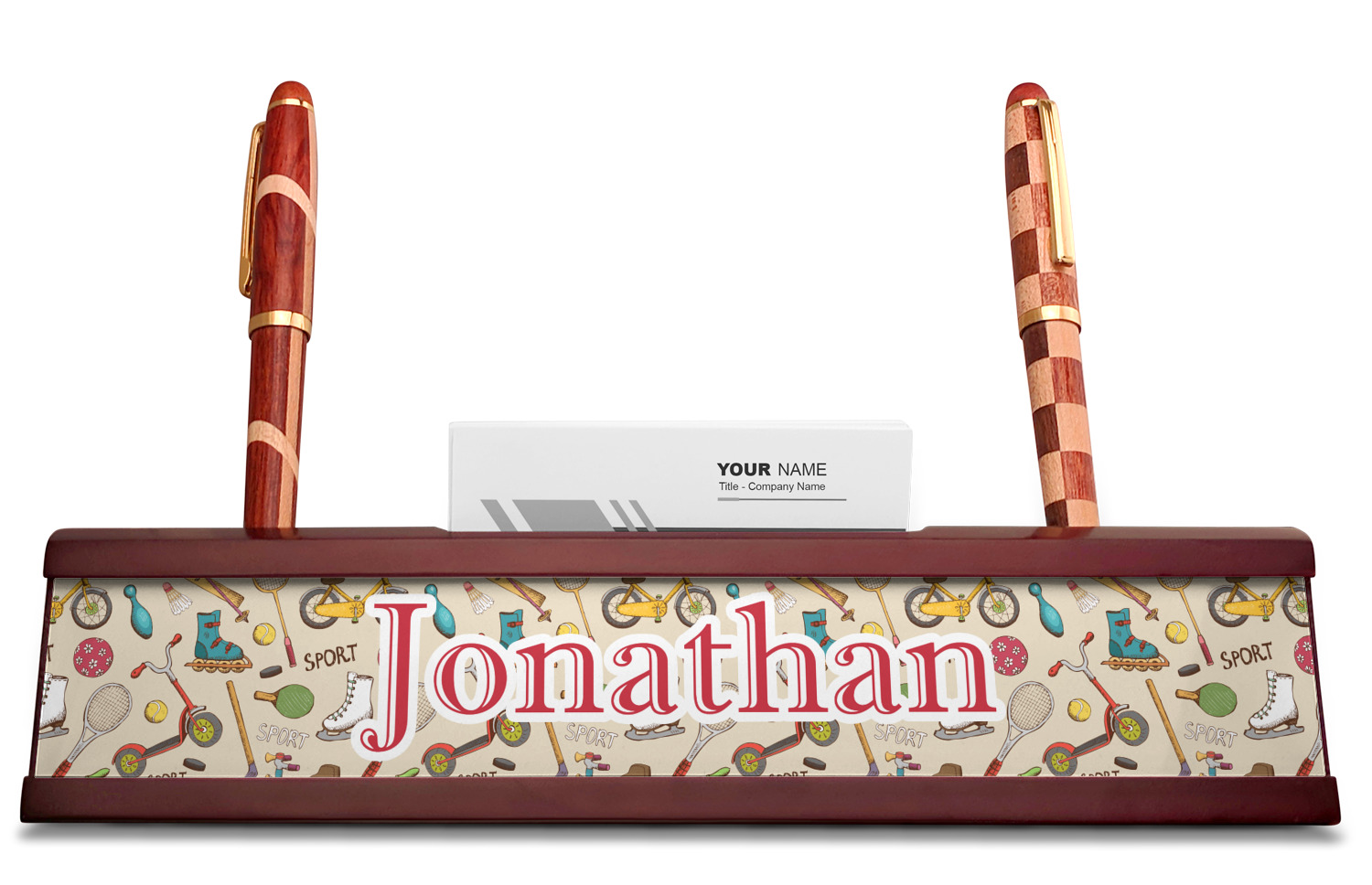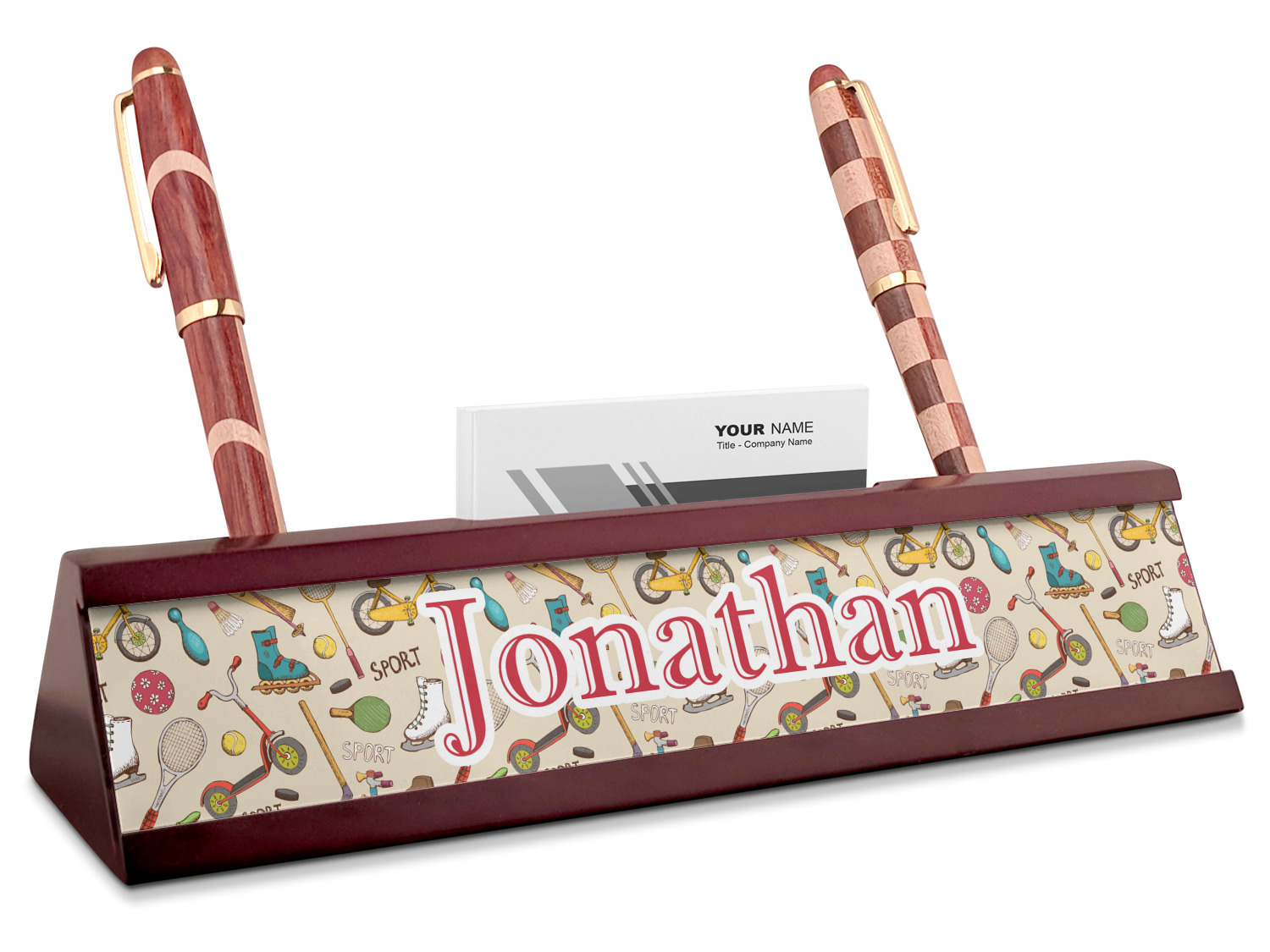 Vintage Designs for Red Mahogany Nameplates with Business Card Holder
