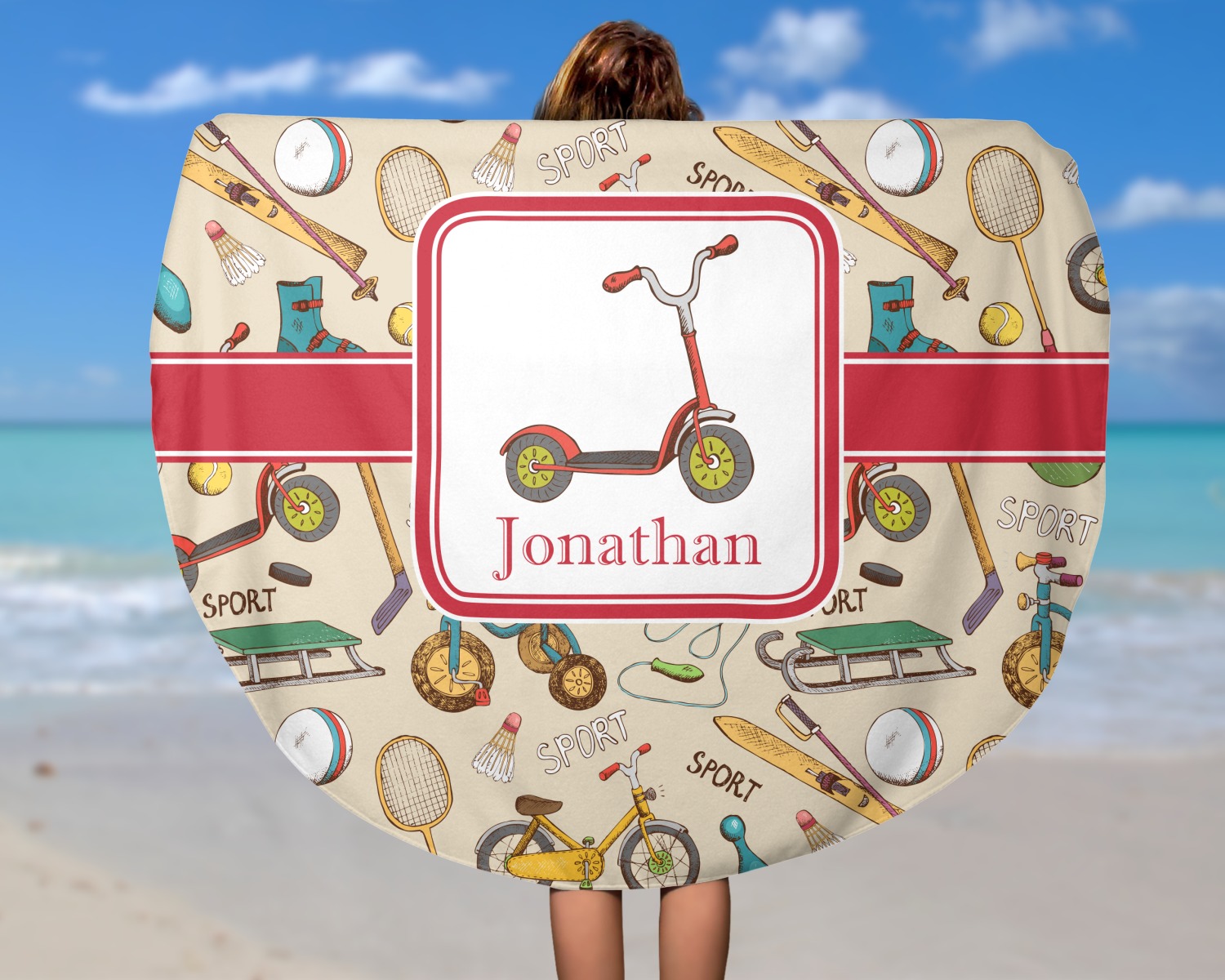 Think out of the box on your next beach, pool, or picnic day in style on your personalized round towel. This must have durable accessory is the perfect size for keeping you, and your possessions out of the sand. Sprawl out in the sun without getting your hands dirty, the unique round design allows for a full range of motion.