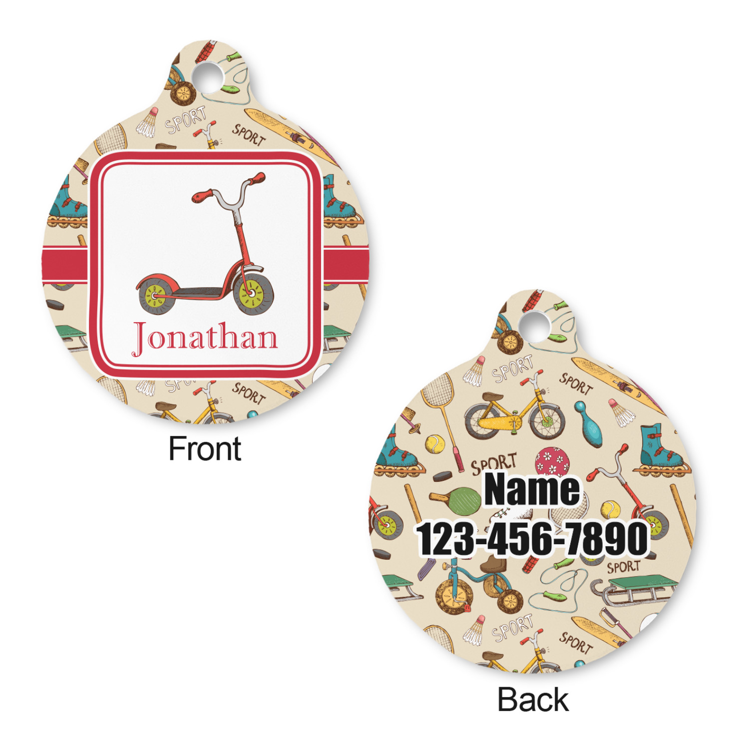 Go ahead; skip the monotony of plain pet ID tags with your very own, customized & personalized, round pet tag! This pet ID tag, fitting for both cats and dogs, will catch the eye of any onlooker (humans, canines, and felines, alike!) and accentuate your pet's individual personality.