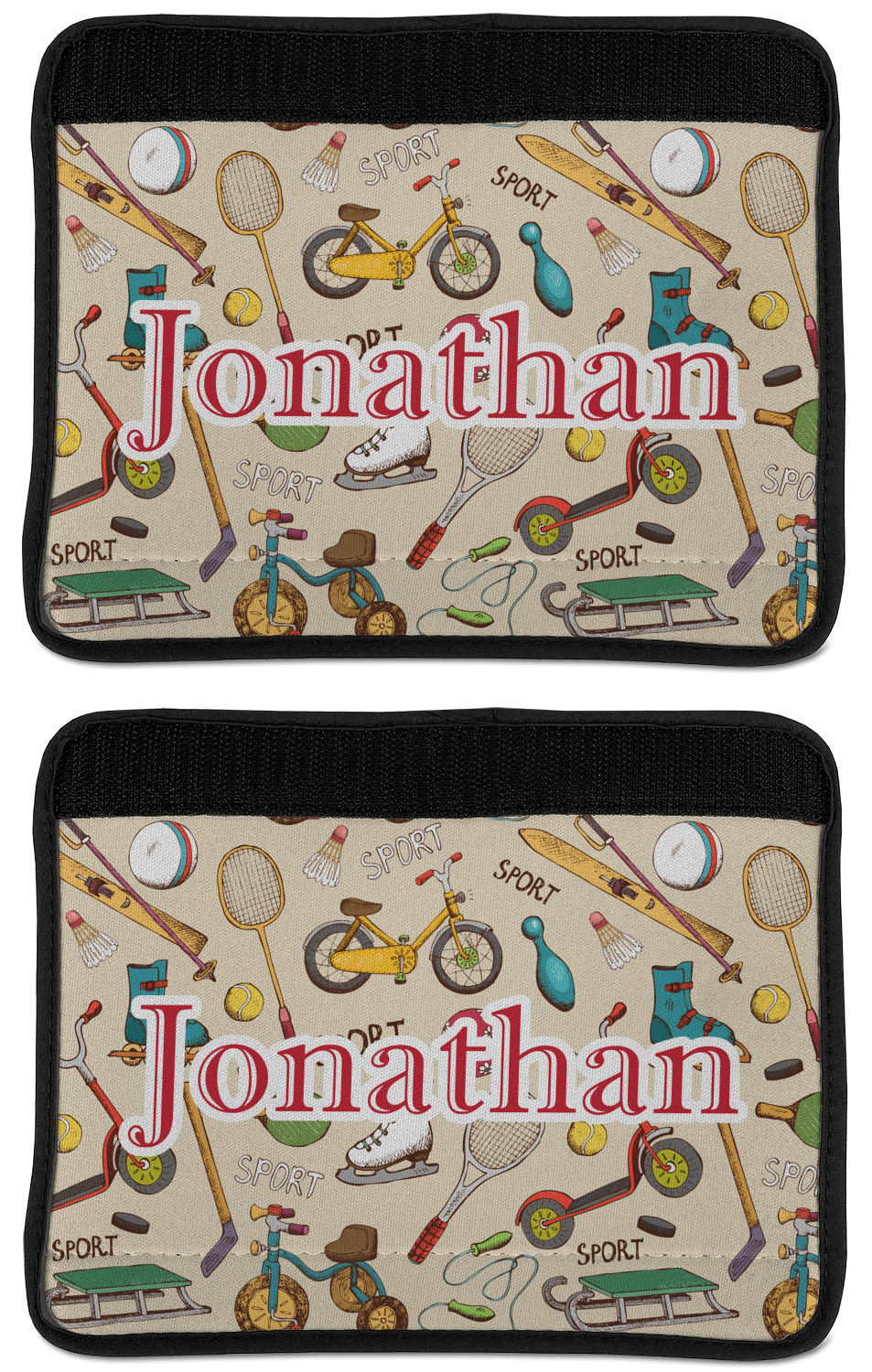 Made from neoprene, our seat belt strap covers wrap around the belt itself and have a Velcro tab for easy attachment and closure. The belt's edges are trimmed with a black polyester for a secure finish. Each cover is 9.5 by 7 inches when open and 9.5 by 2.5 inches when closed. We print your personalized design on the face of the seat belt pad.