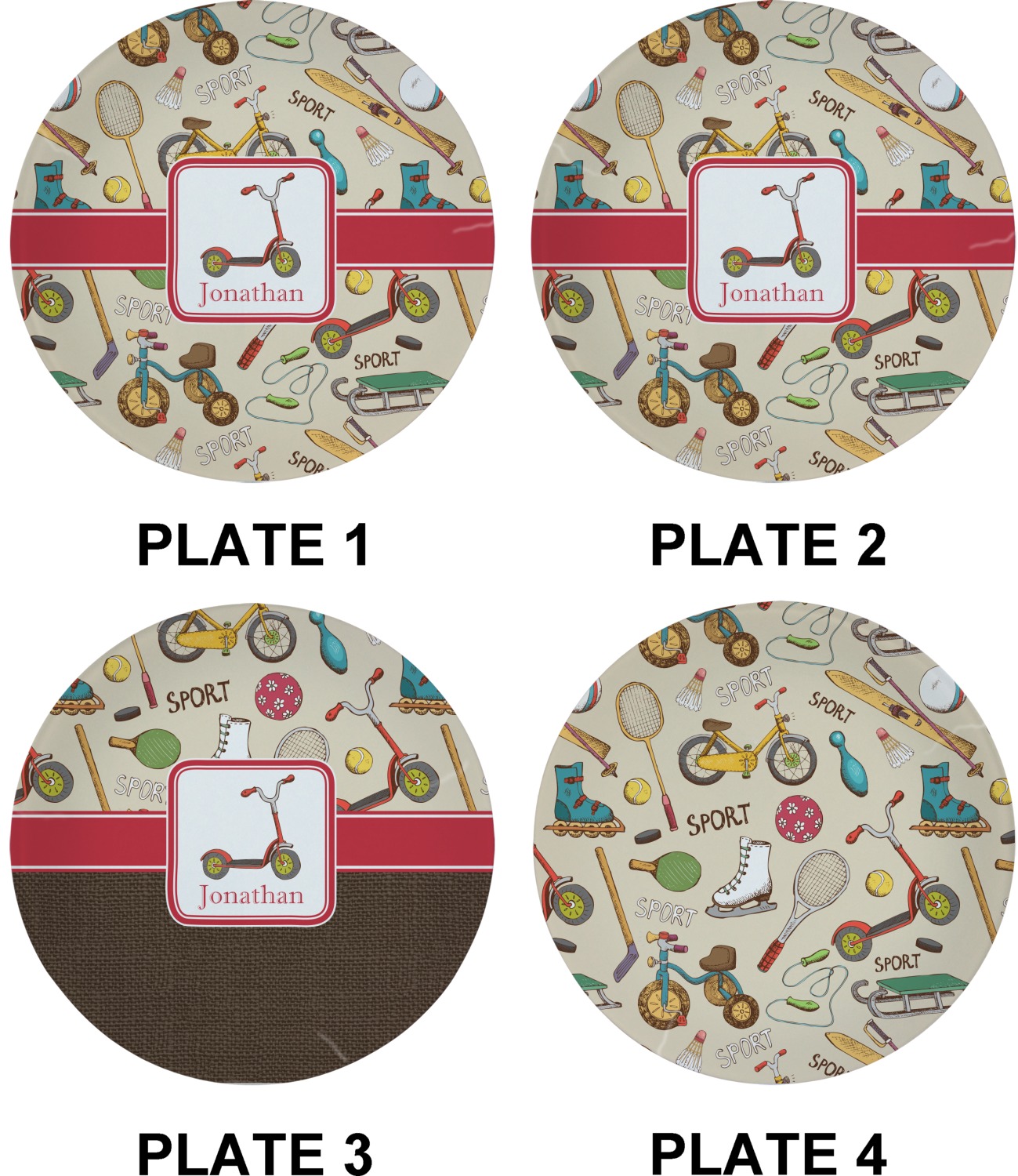 With a of designs and patterns, these plates are completely customizable. Choose a foodie design, complete with red-hot chili peppers, or go classic with stripes or plaid. Include your monogram or family name to make sure these plates never get lost at parties!