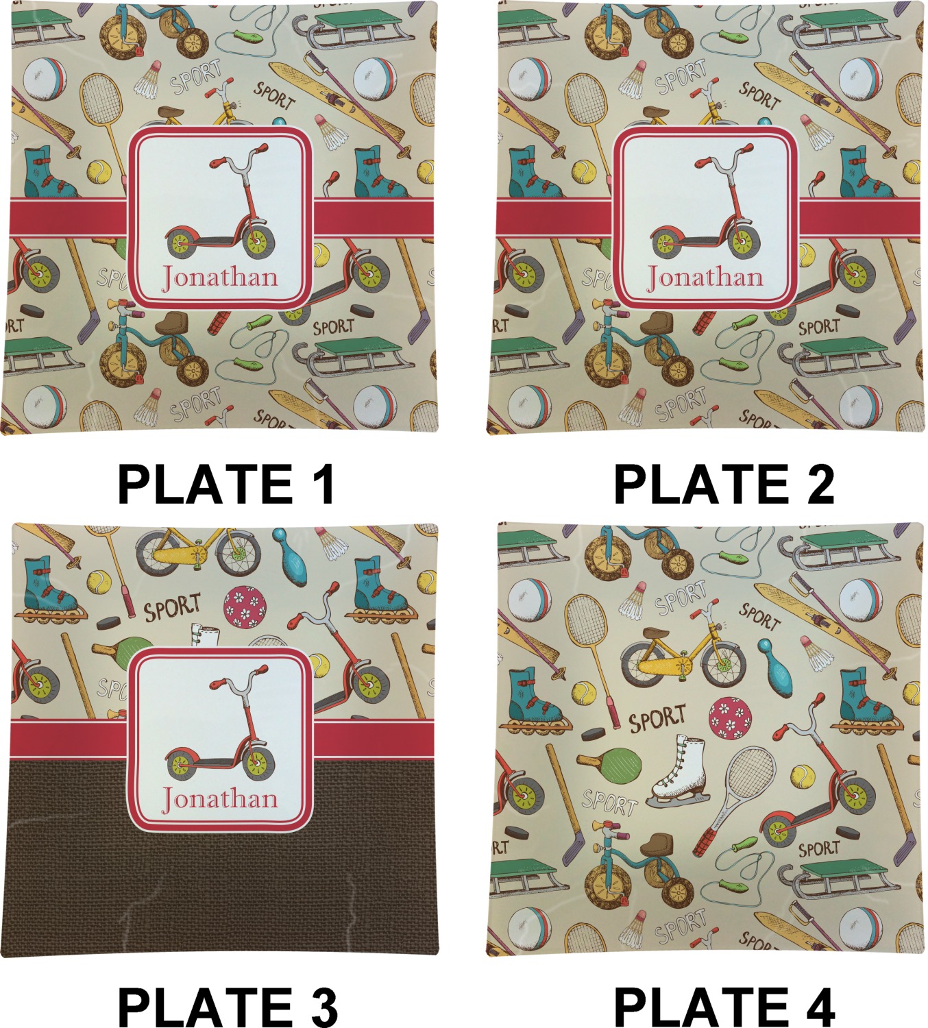 Vintage Designs for Glass Square Lunch / Dinner Plates 9.5" - Set of 4