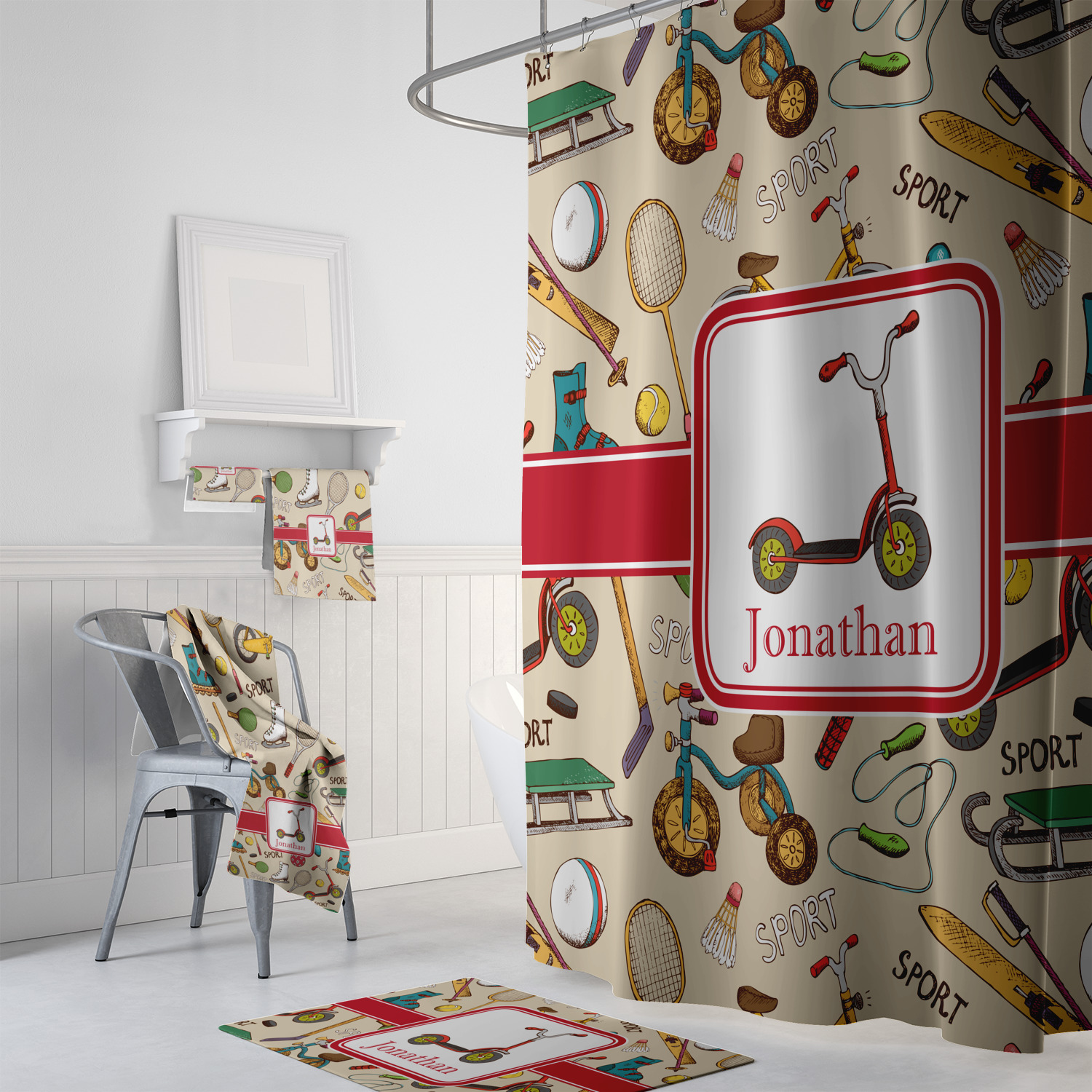 Passionate about your cute shower curtain? Customize any of our kids' shower curtains to make a lovely gift for your kid and a wonderful addition to his/her bathroom! Or, check out our Bathroom section for even more bath-related, customizable products. We offer memory foam bath mats, bath towels, waste baskets, and more!