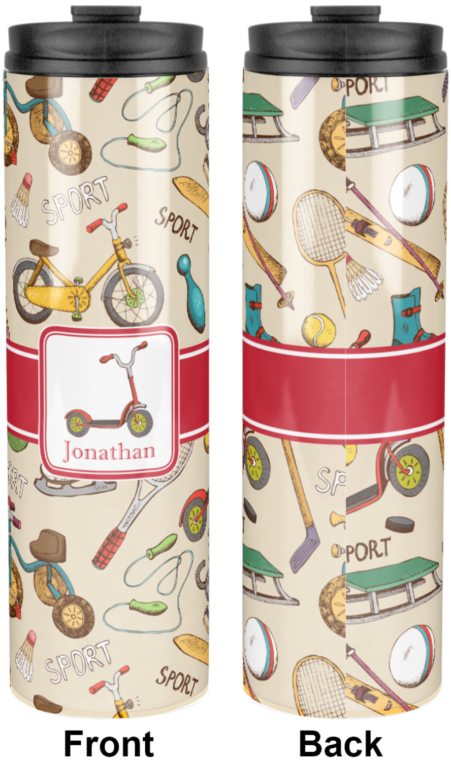 Sip your favorite drink on the go with your own custom stainless steel tumbler! Our slim cylinder shape is perfect for holding your drink in hand, in your purse, or in your backpack! This sleek and modern tumbler is a perfect gift for coffee and tea lovers keeping their drinks just the right temperature throughout the day! We offer two sizes, a 16 oz. or 20 oz., to personalize. Browse and customize or design or create your own with our online design studio!