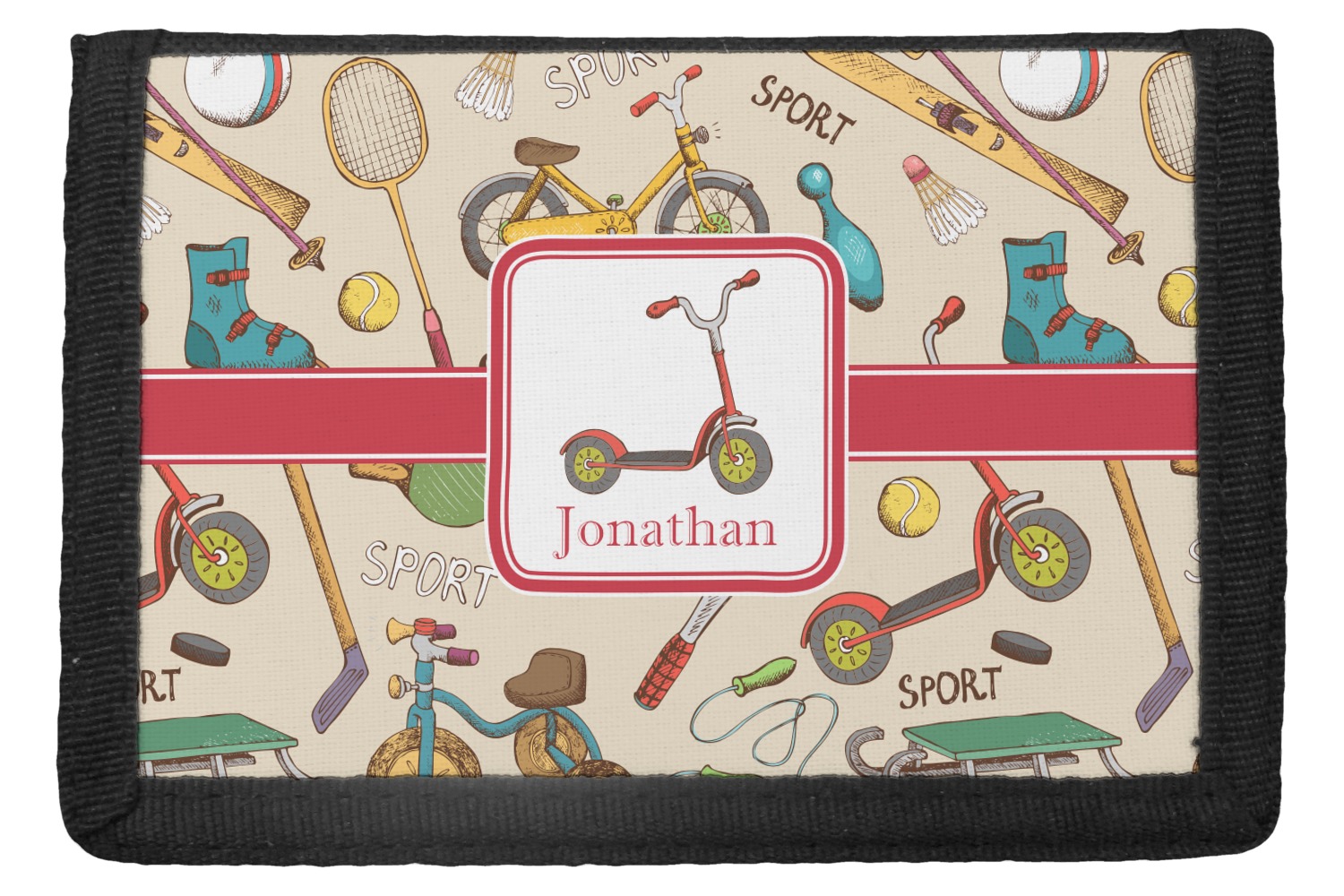 The wallets are black with the design printed on the front flap. You are able to create your design either horizontally OR vertically. They have 4 slots for IDs or credit cards and 1 large slot for cash. The wallet folds in thirds and is tightly secured by velcro. They are great starter wallets for kids or just as a good durable wallet for an adult.