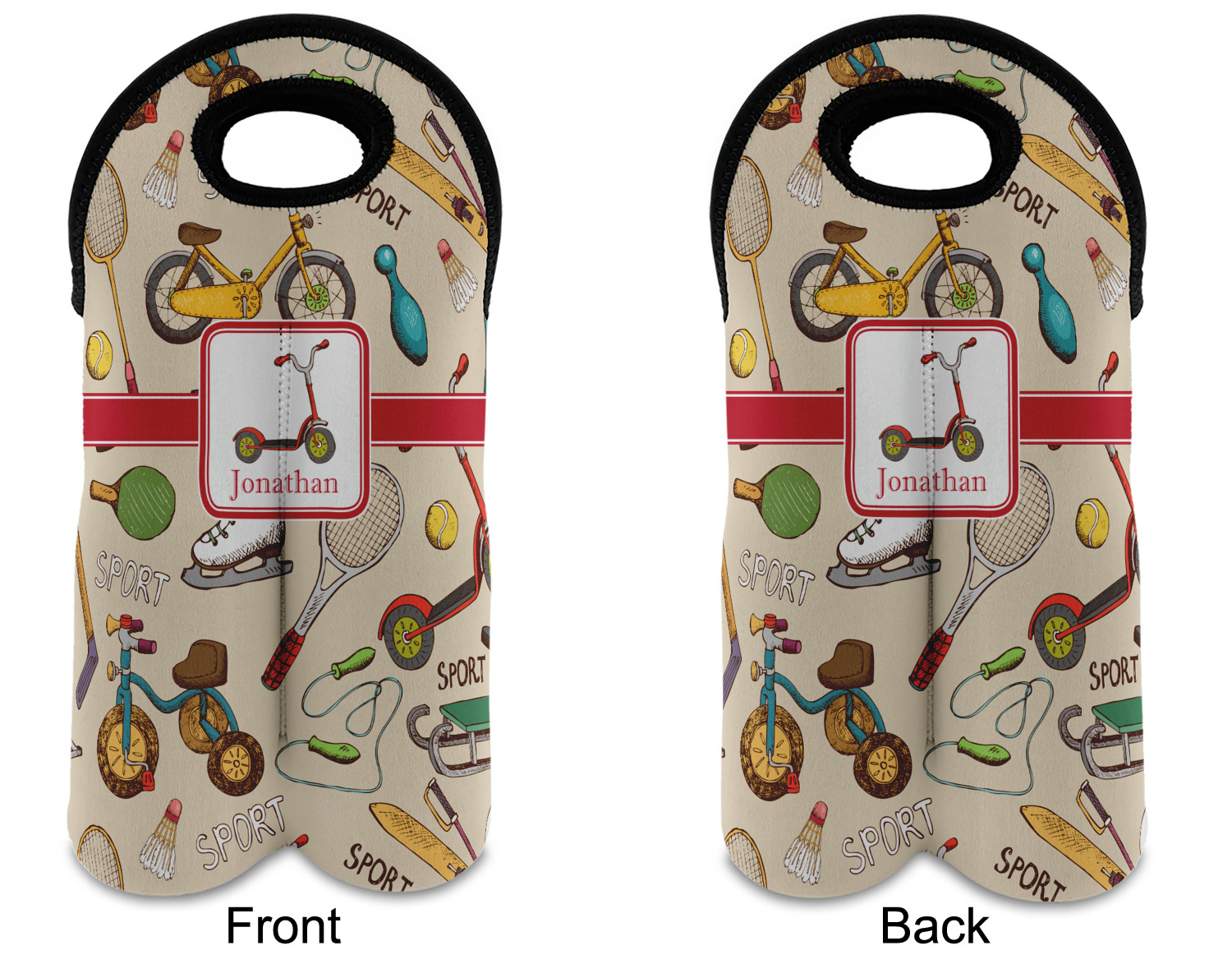 These tote bags are insulated to keep the bottles cold and have a stitched separation down the middle and double handles to keep the two bottles safe and secure during travels.