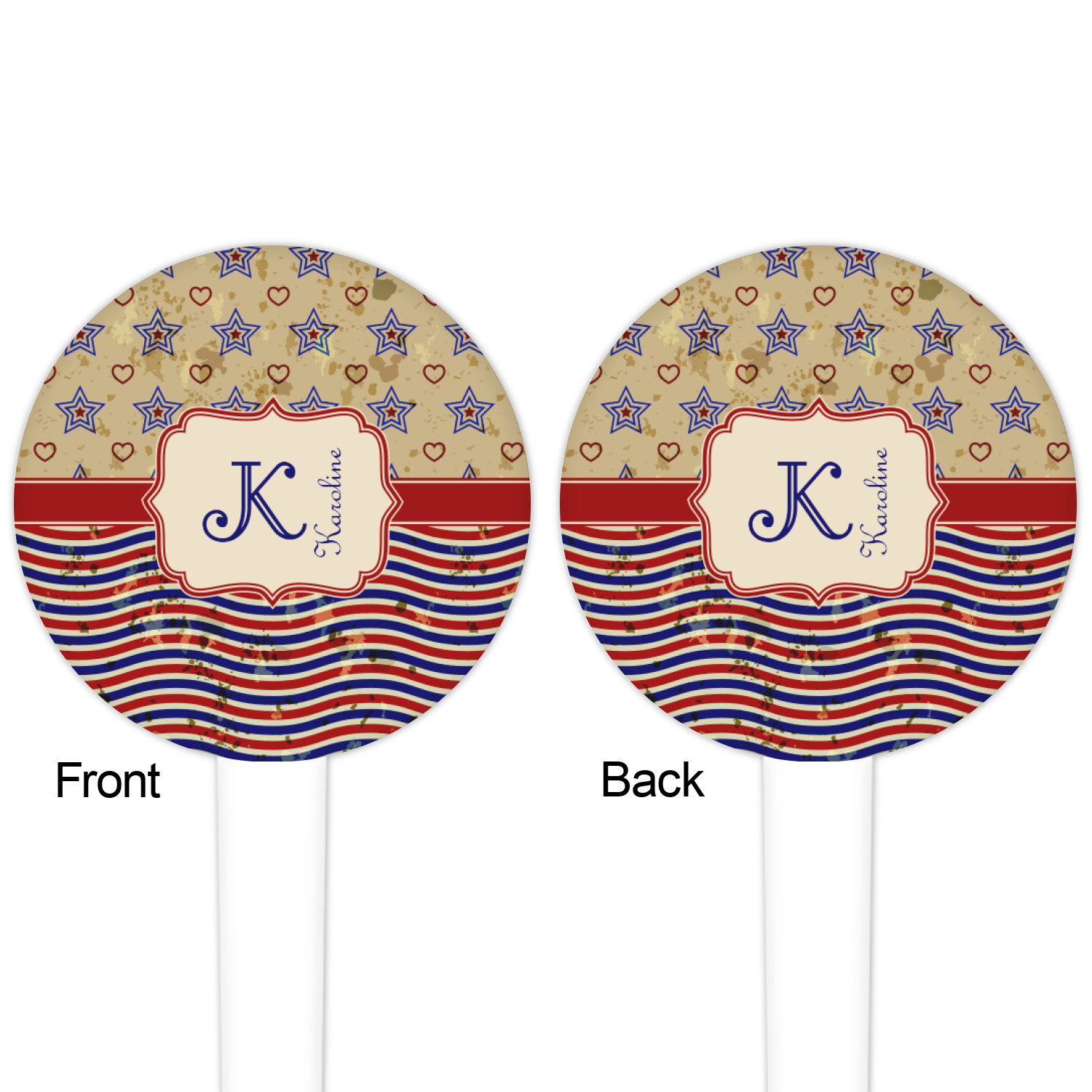 America / USA Designs for 4" Round Plastic Food Picks - White - Double-Sided
