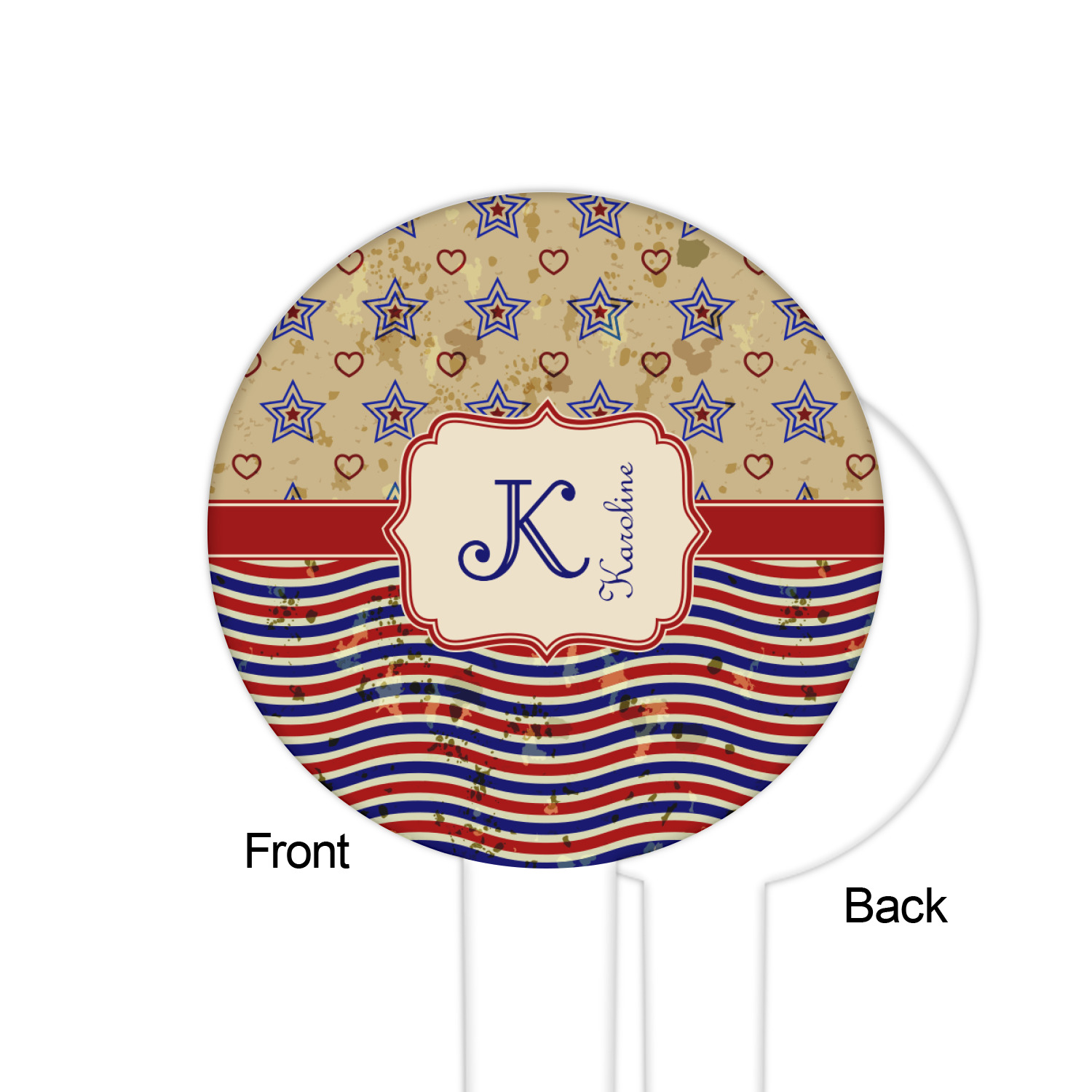 America / USA Designs for 6" Round Plastic Food Picks - White - Single-Sided