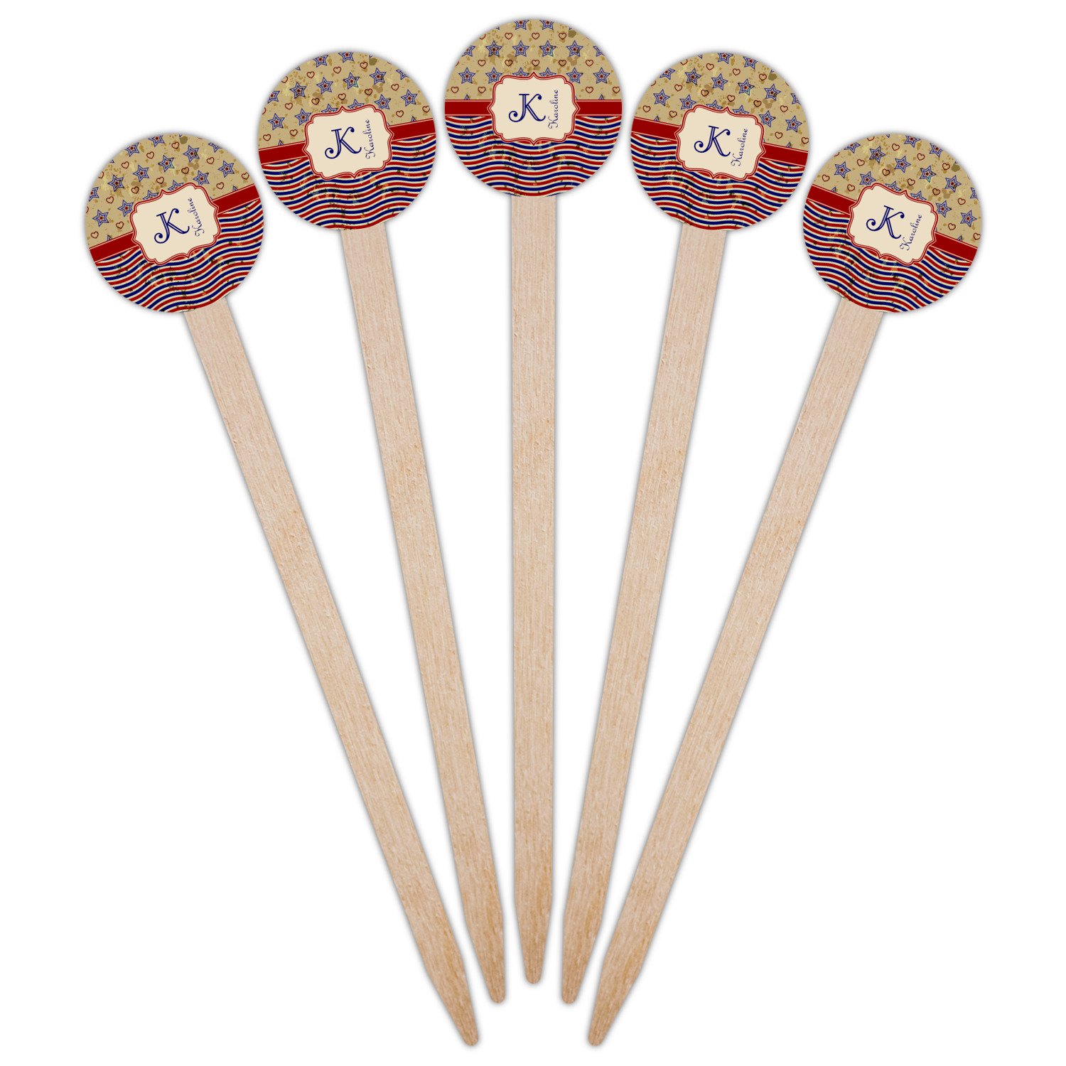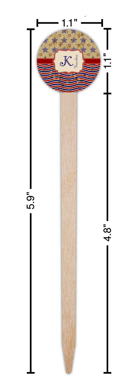 America / USA Designs for 6" Round Wooden Food Picks - Single-Sided