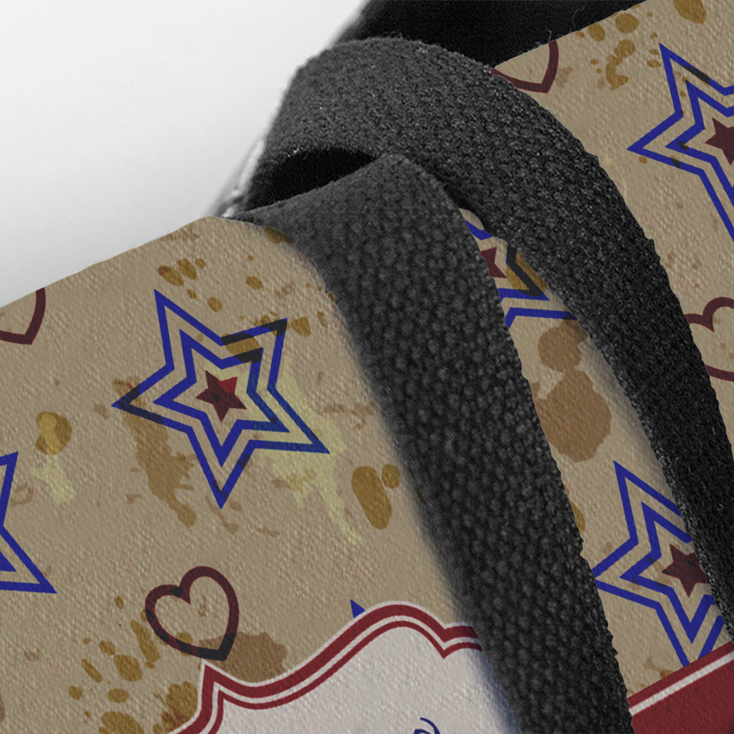 You can design the totes with a design on the front and another one on the back. The two designs can be identical or completely different. The choice is yours.