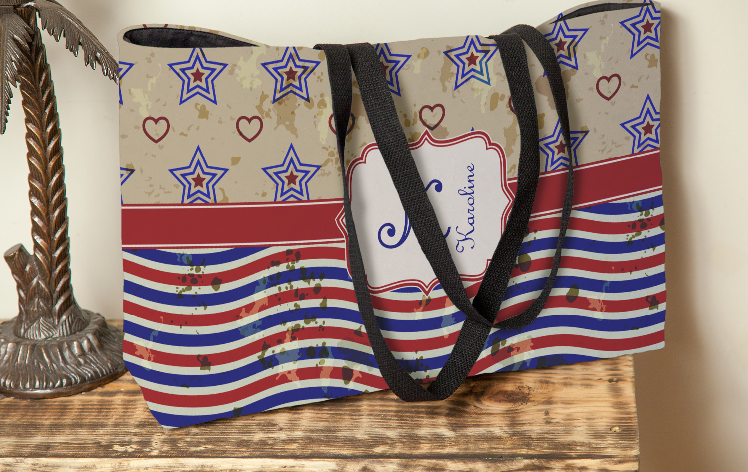 America / USA Designs for Beach Totes Bags - w/ Black Handles