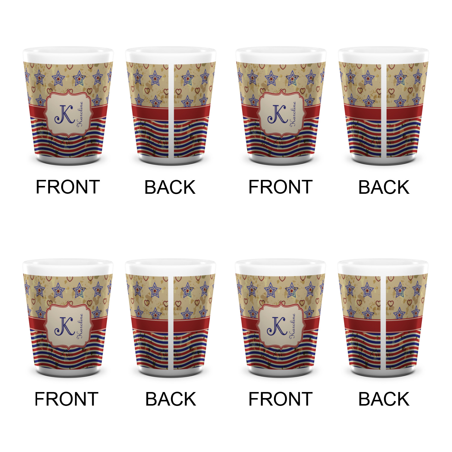 America / USA Designs for Ceramic Shot Glasses - 1.5 oz - White - Set of 4