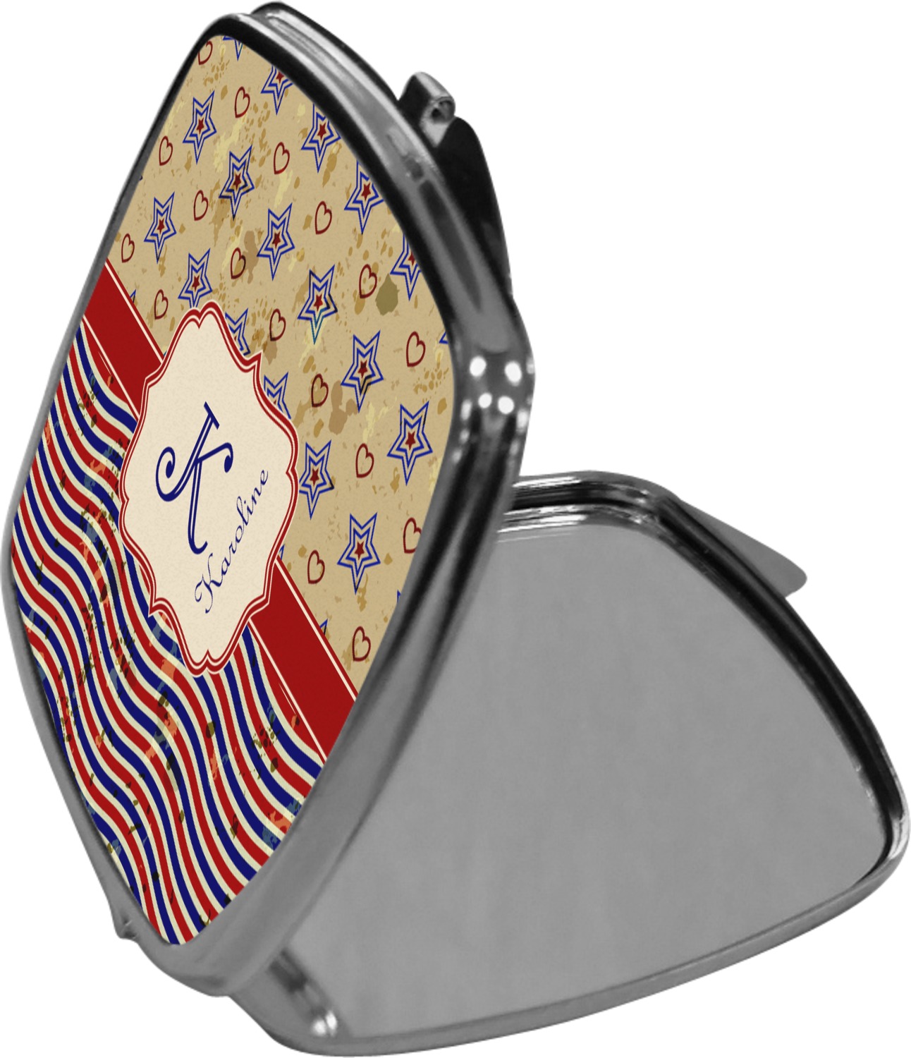 We offer many prints and patterns and many of our patterns are available in 45 different colors. You can personalized the compact mirrors with a name, a monogram or just an initial. We offer several different label, ribbon and font choices. Our customization system lets you create your very own custom & unique product and it lets you preview it before you purchase.