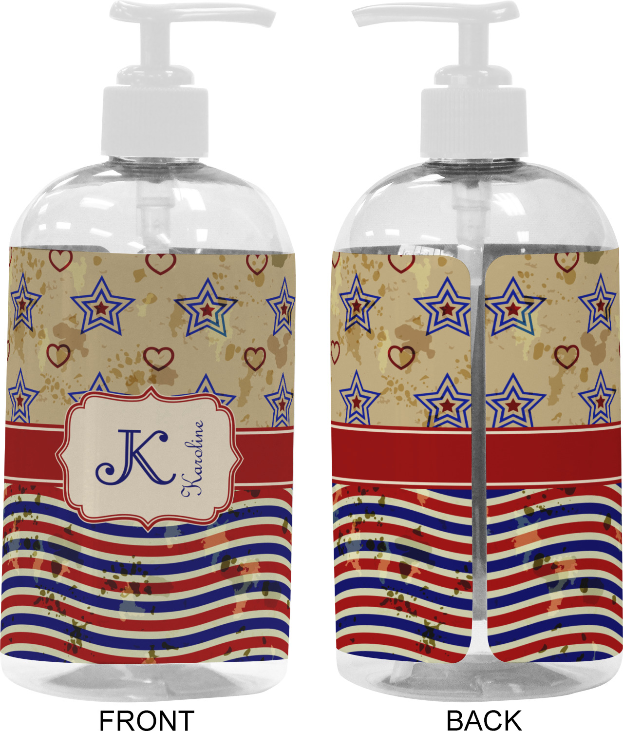 America / USA Designs for Plastic Soap / Lotion Dispensers - 16 oz - Large - White