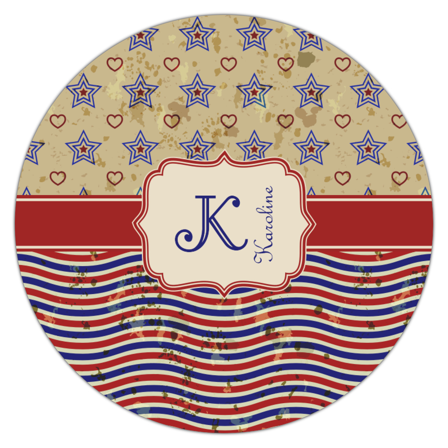 The 4th of July brings back memories of sweet lemonade, summertime, and the good ol' days in the USA. This design combines that red, white, and blue all-American vibe with a retro twist: wavy stripes and hearts.