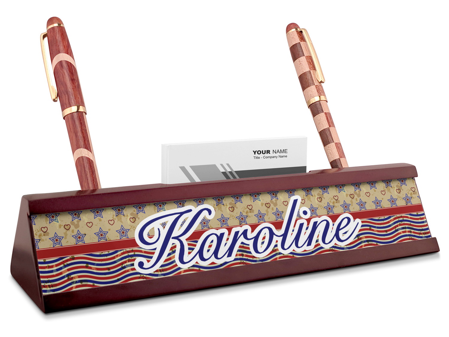 America / USA Designs for Red Mahogany Nameplates with Business Card Holder