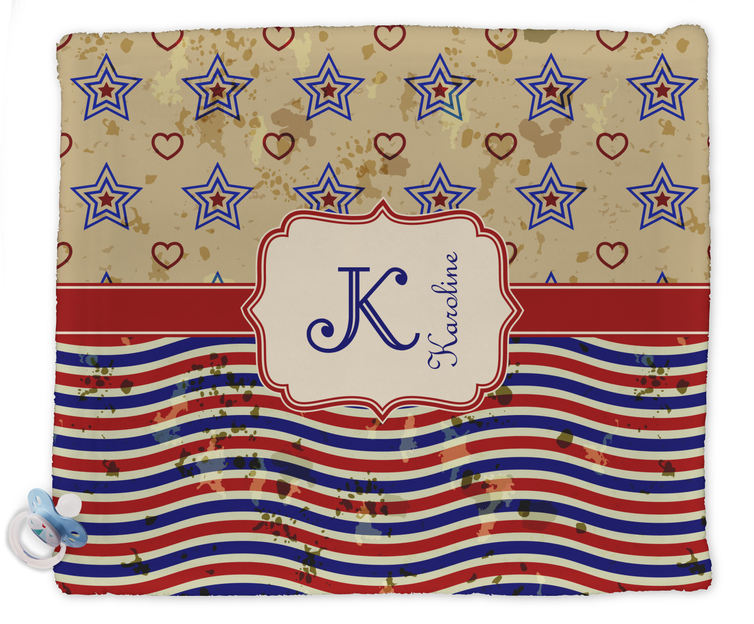 Crafted from an ultra soft fleece, these lovey blankets are the perfect, portable size to follow your child on any of his or her adventures. The plush texture also makes them ideal for naptime. Each personalized baby blanket measures at approximately 12 by 11 inches.