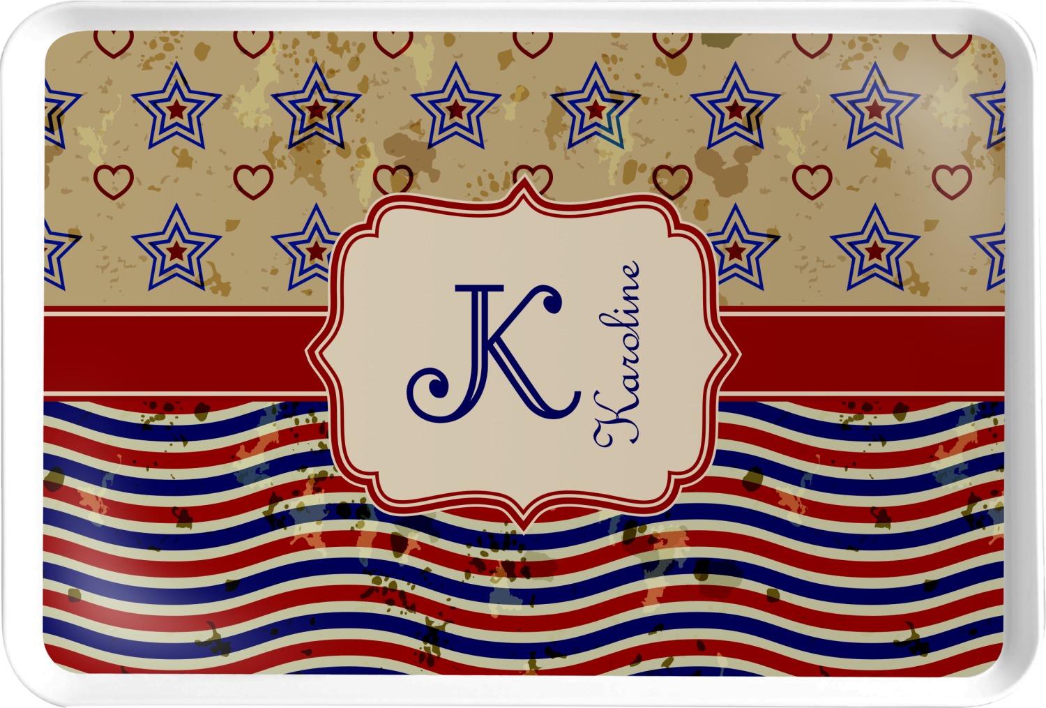 Made from a heavy melamine, these decorative trays are break resistant and are BPA free. At 14" x 9.25", these serving dishes are spacious enough to accommodate several drinks, bowls, or more. The tray features ridges underneath that allow for a sturdy stance upon any table or counter-top. We display your customization at the bottom of the tray's interior, while the remaining sides of the tray are a chic white.